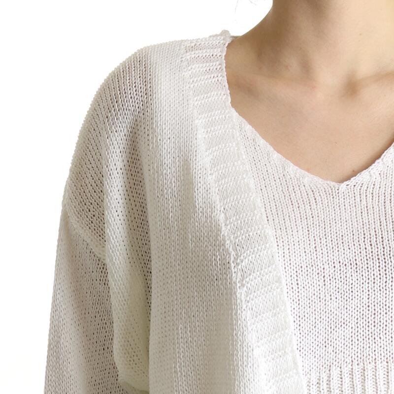 Twinset in fettuccia, top crop spalla larga a scollo a V e giacca maglia senza bottoni. Vestibilità regular.