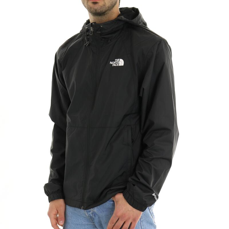 Giubbotto antivento, tasche con zip, cappuccio, logo stampato. Vestibilità regular.