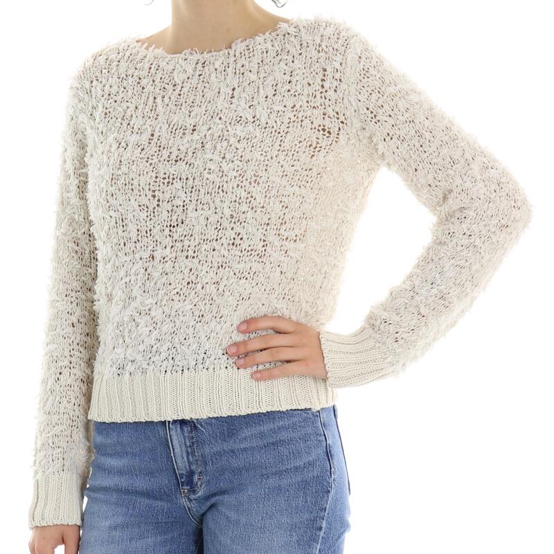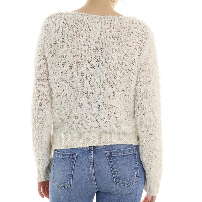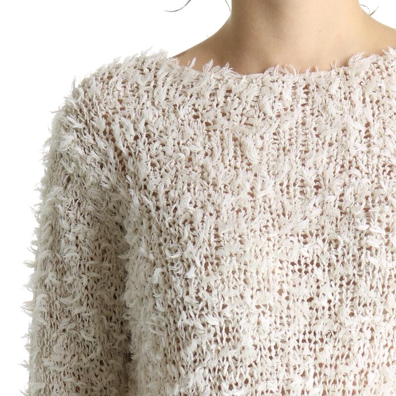 Maglia girocollo, effetto teddy, polsini e balza in fondo. Vestibilità regular.