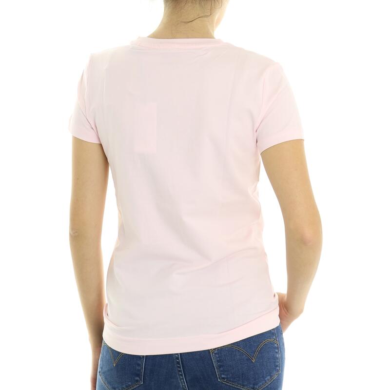 T-shirt mezza manica, tinta unita, girocollo, logo frontale con applicazioni. Vestibilità slim.