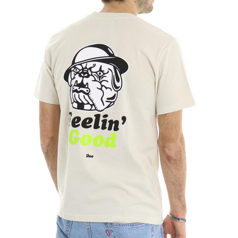 T-shirt meeza manica, girocollo, tinta unita, maxi stampa dietro. Vestibilità regular.