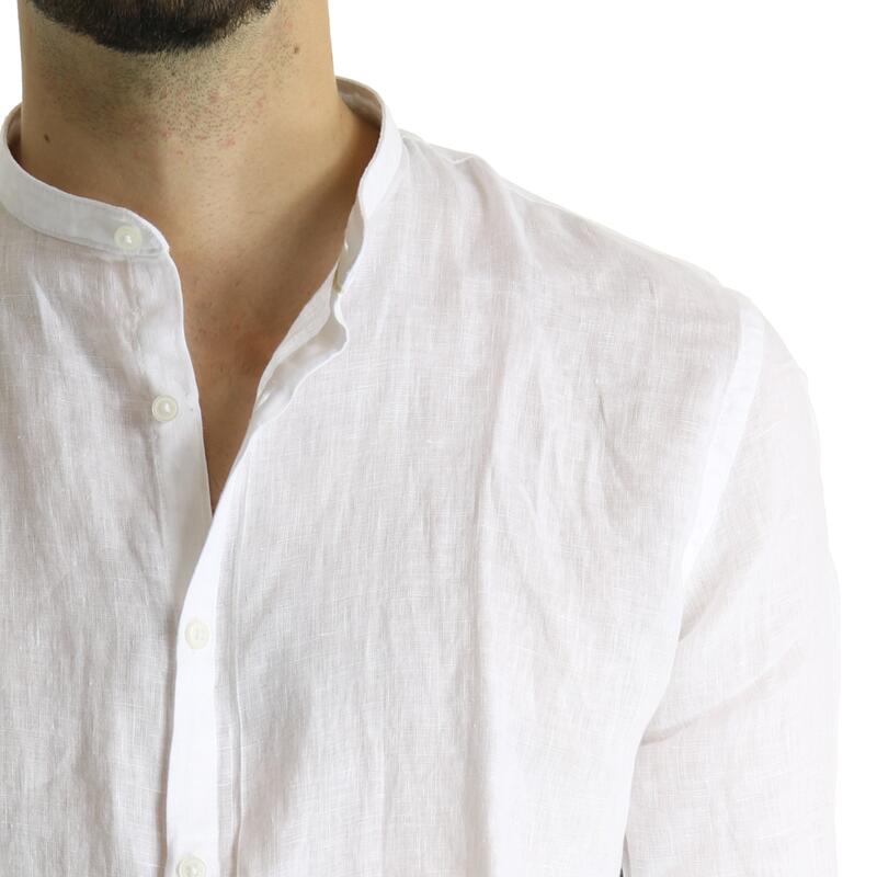 Camicia in lino maniche lunghe, collo alla coreana, tinta unita. Vestibilità regular.