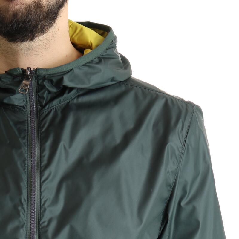 Giubbotto in tessuto tecnico reversibile collo con cappuccio chiusura con zip, multitasche. Vestibilità slim.