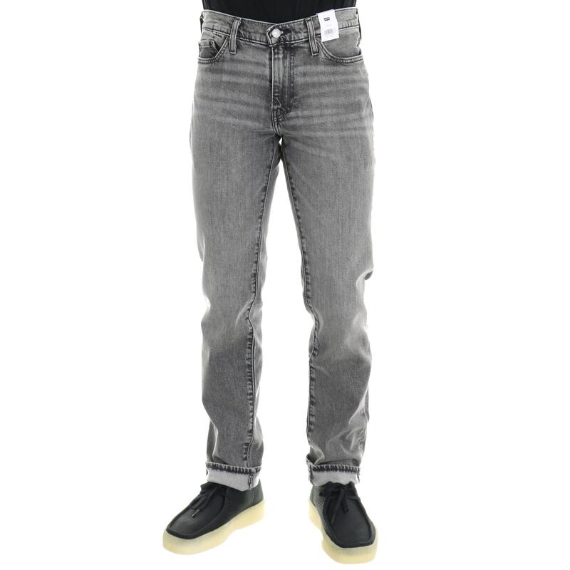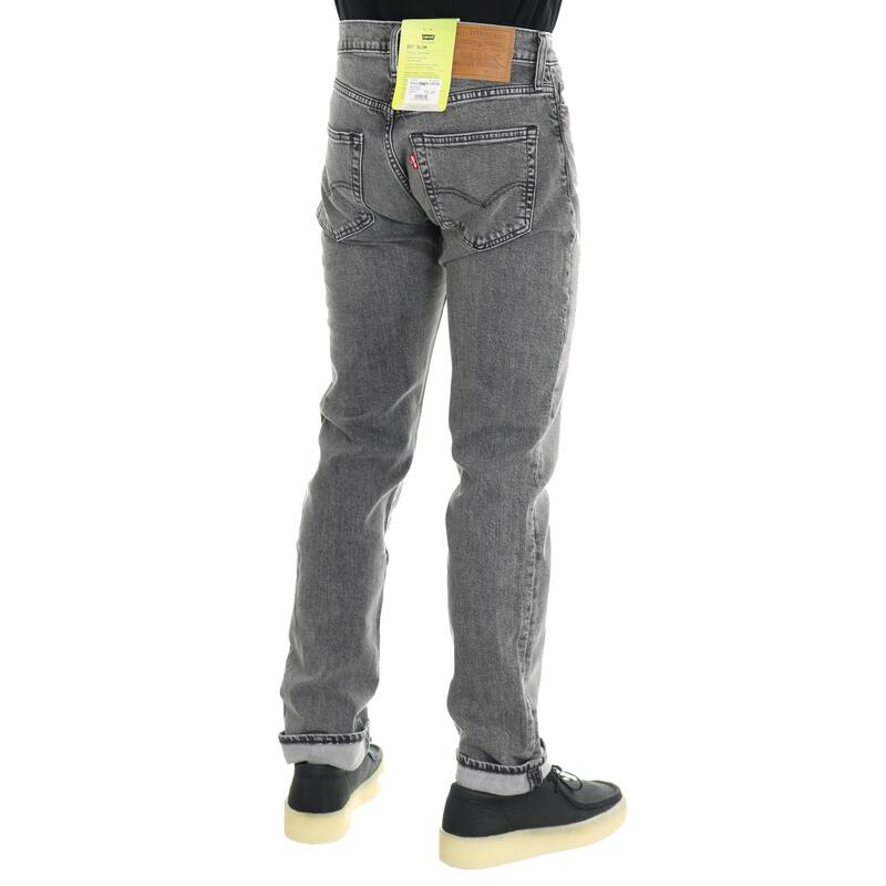 Jeans stretch, slavato grigio, vita media, salpa a contrasto, chiusura con bottone e zip. Vestibilità slim.
