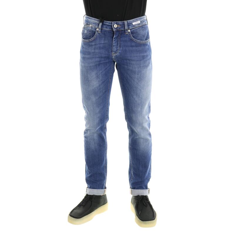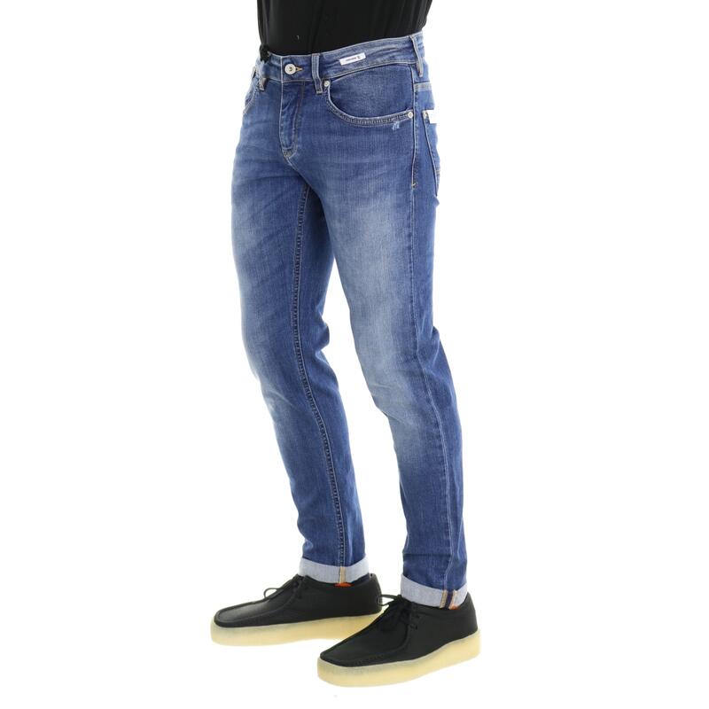 Jeans stretch, slavato, vita media, salpa a contrasto, chiusura con bottone e zip. Vestibilità skinny.