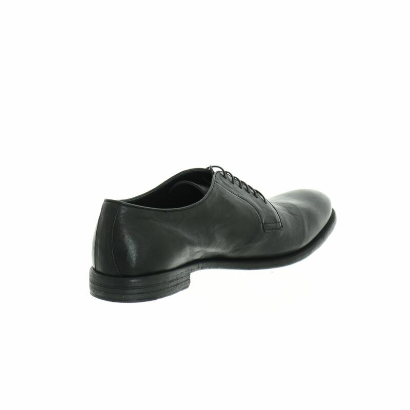 Scarpa stringata in pelle con suola in gomma effetto cuoio antiscivolo, calzata abbondante.