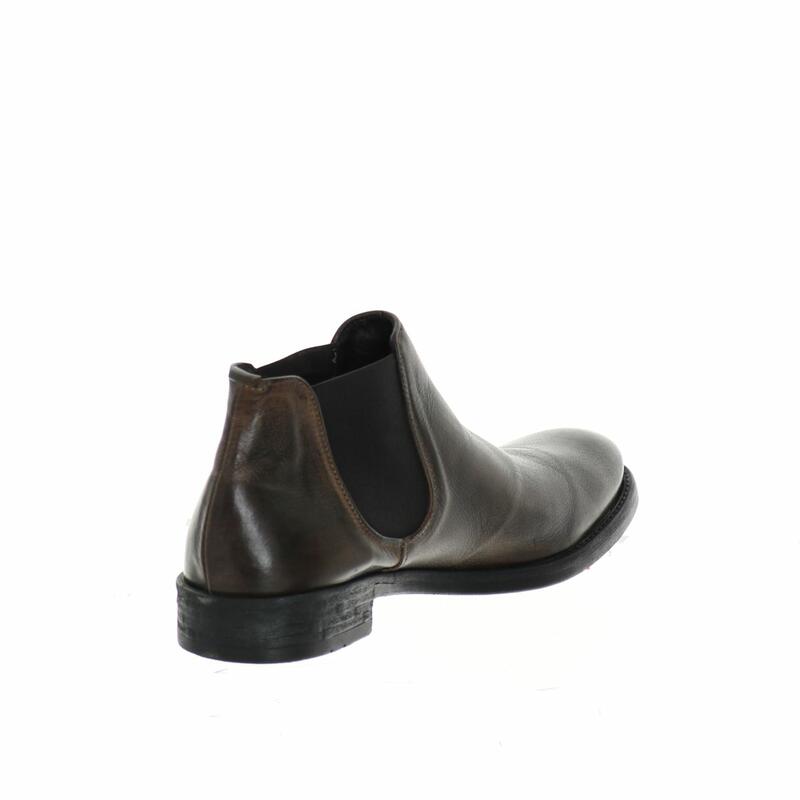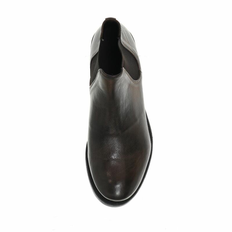 Scarpa in pelle con suola in gomma effetto cuoio antiscivolo, elastico nei laterali, calzata abbondante.