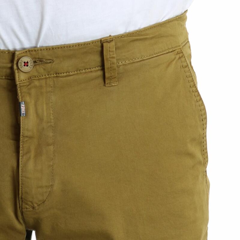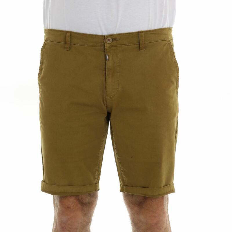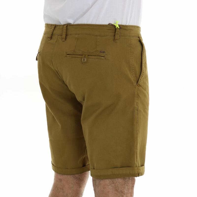 Pantalone corto, vita media, chiusura con bottone e zip, tasca america. Vestibilità slim.