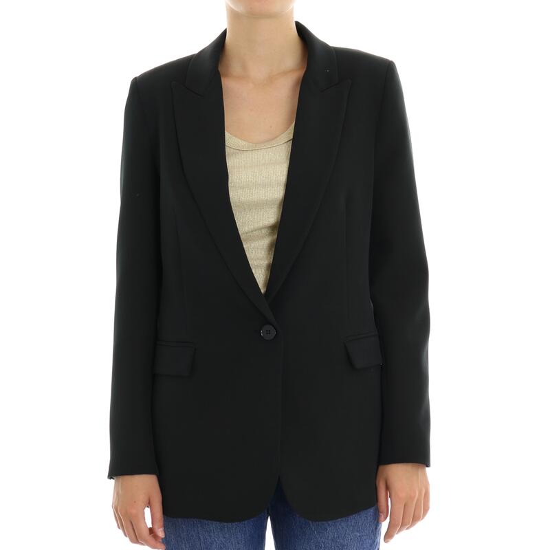 Giacca lunga, tessuto tecnico, monopetto con rever classico. Vestibilità regular.