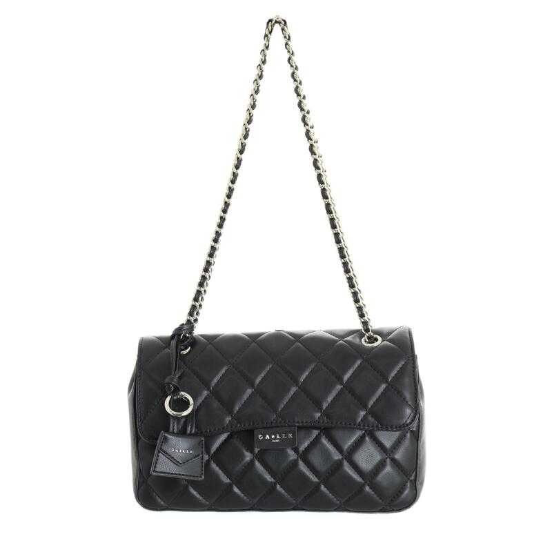 Borsa a spalla in ecopelle trapuntata, modello chanel, patta con chiusura calamitata, tracolla in ecopelle e catena scorrevole, interno in tessuto.