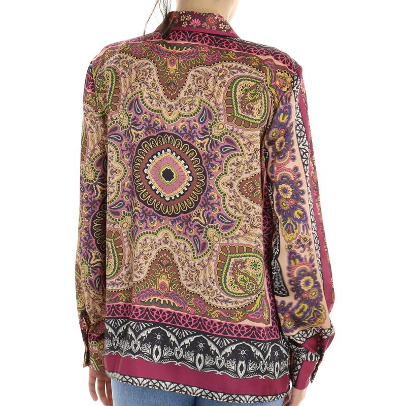 Camicia maniche lunghe in fantasia, bottoni frontali e colletto. Vestibilità regular.