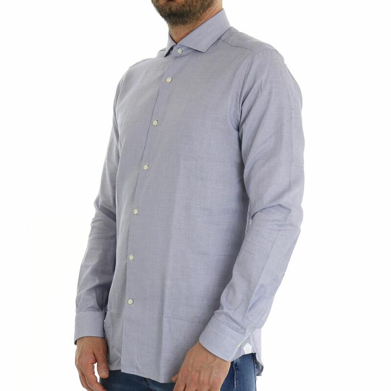Camicia manica lunga, collo francesce, microfantasia, bottoni a vista e pinces. Vestibilità slim