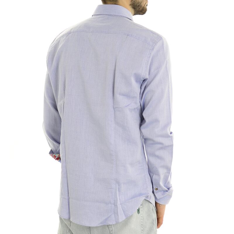 Camicia a maniche lunghe, collo inglese, in microfantasia, dettagli a contrasto in fantasia. Vestibilità slim.