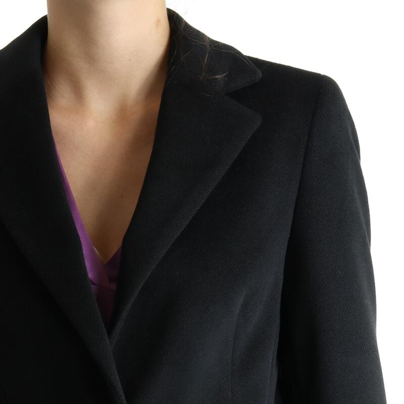 Cappotto avvitato in panno, rever classico, con bottoni frontali, lunghezza 3/4, vestibilità regular.