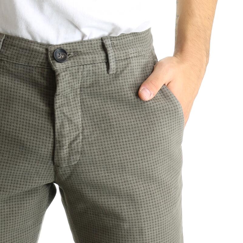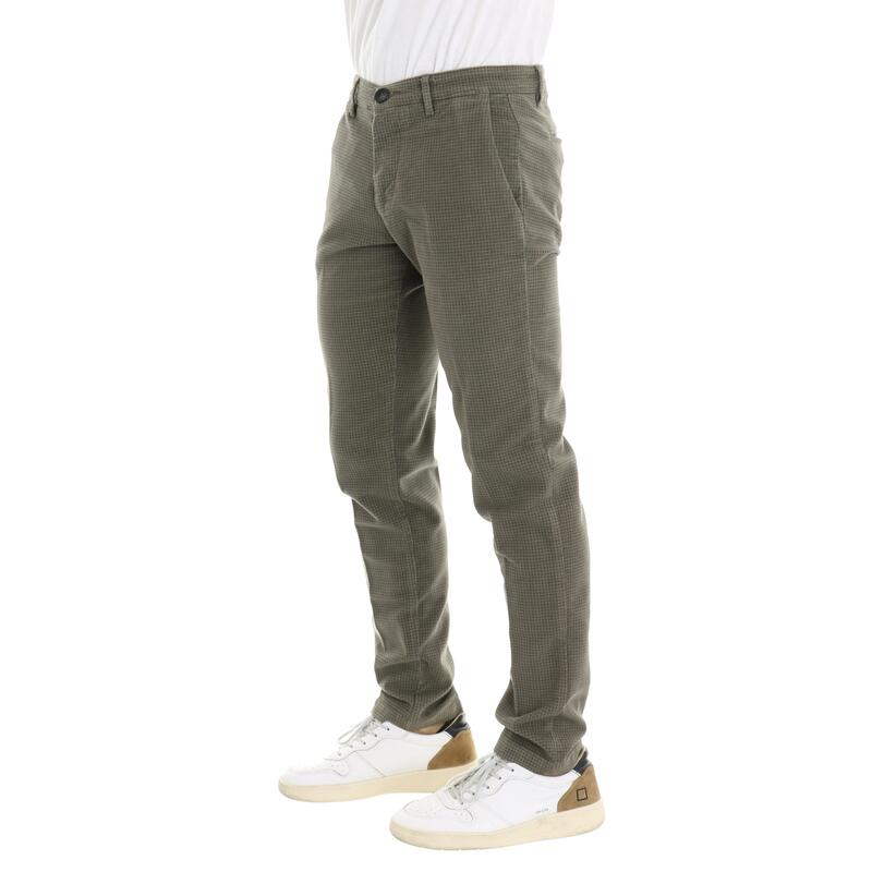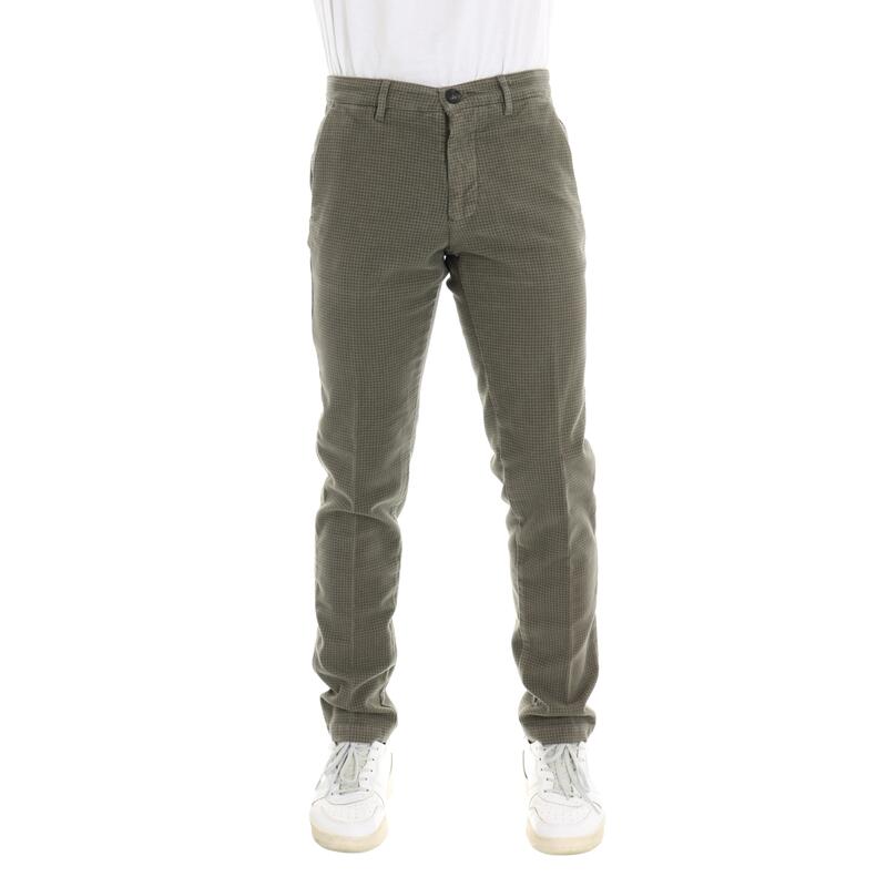 Pantalone in cotone stretch, vita media, tasca america, chiusura con bottone e zip. Vestibilità slim.