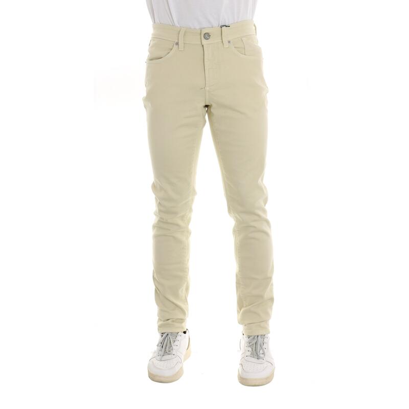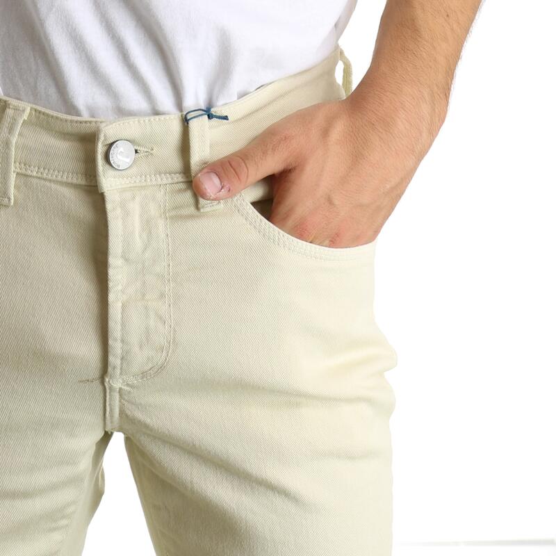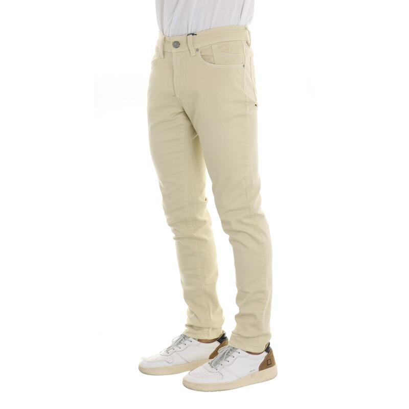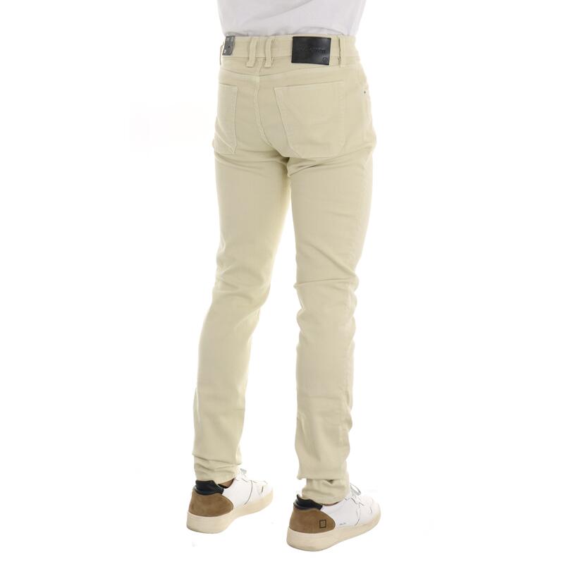 Pantalone cinque tasche in gabardina elasticizzata, tinta unita, vita media, salpa a contrasto, chiusura con zip e bottone.Vestibilità slim.