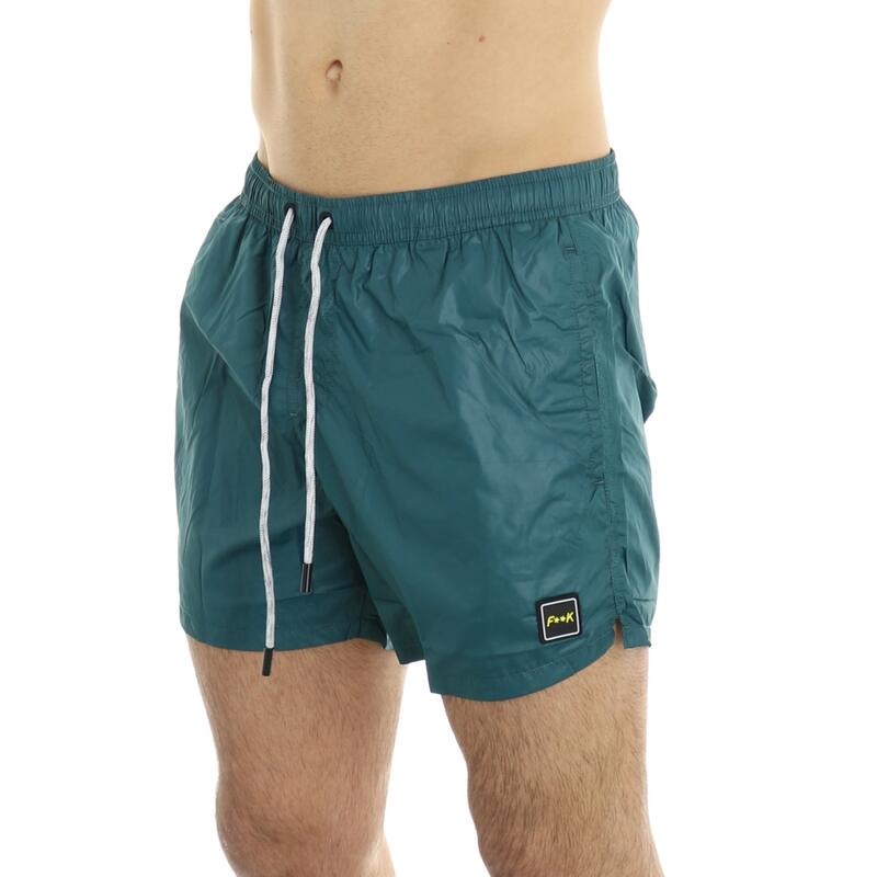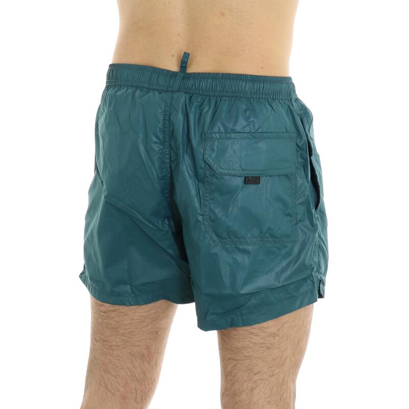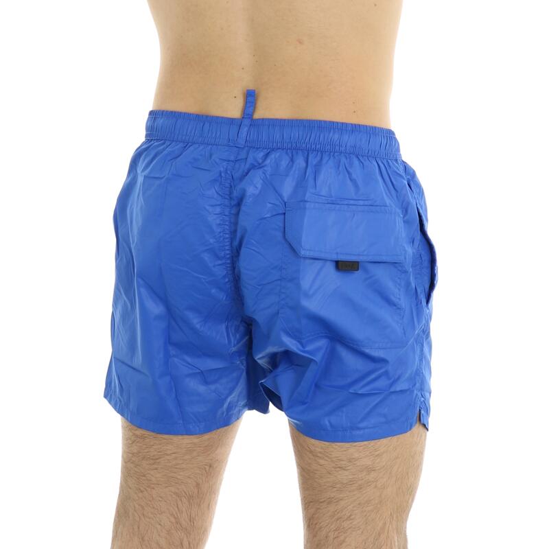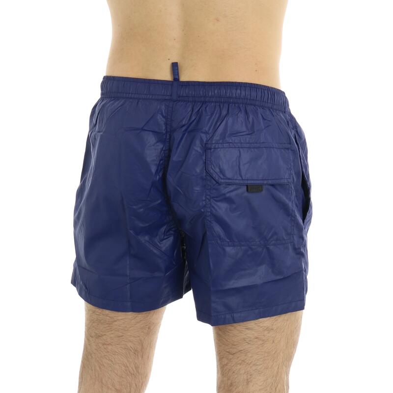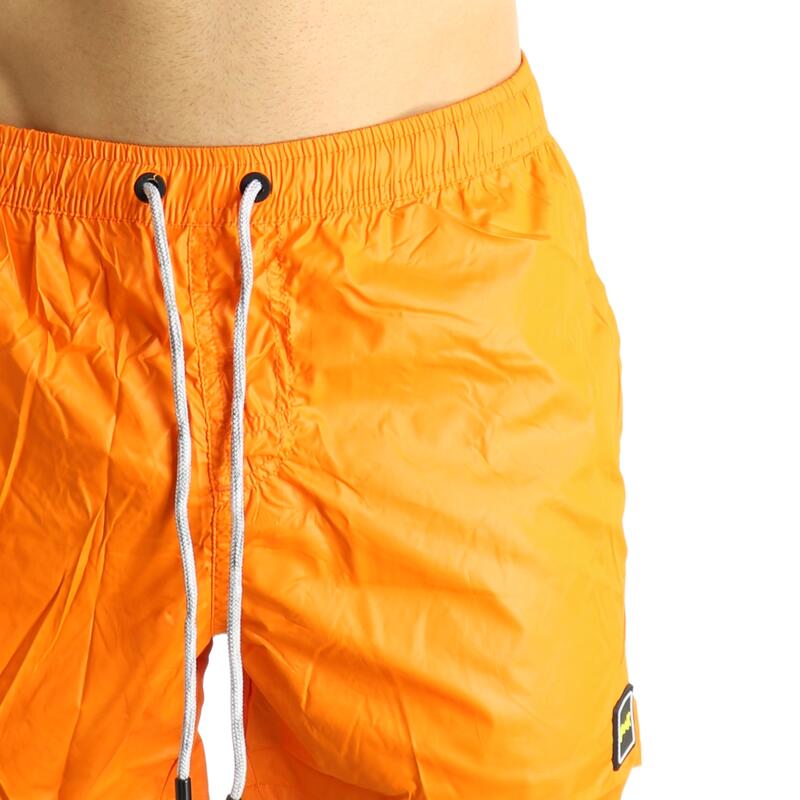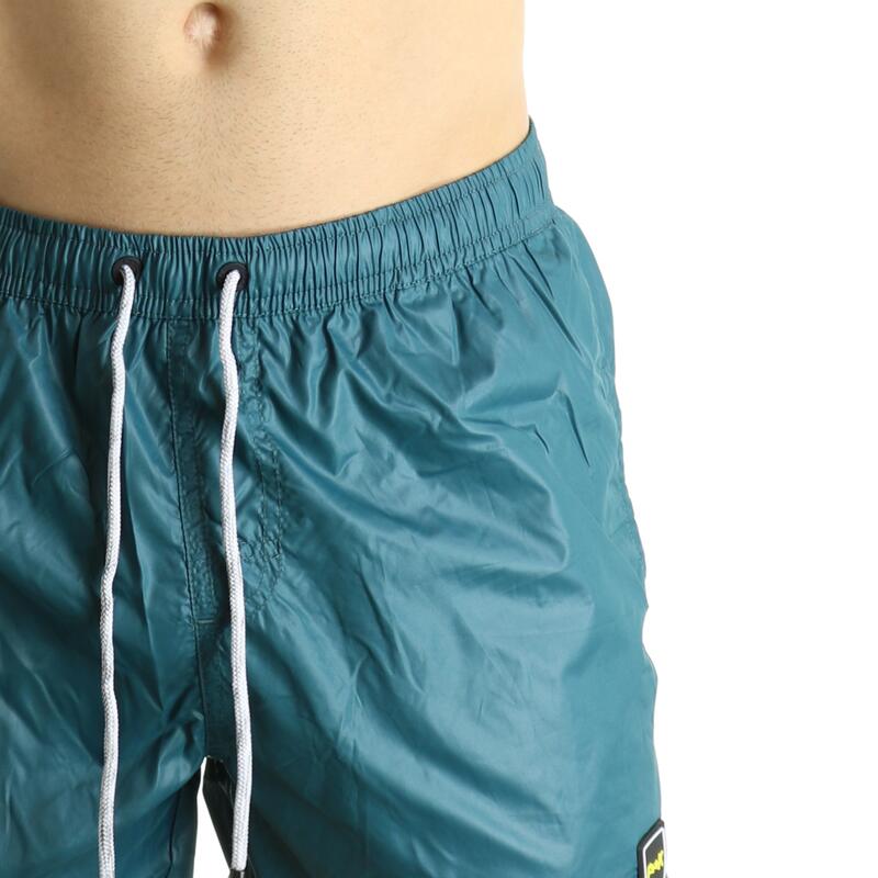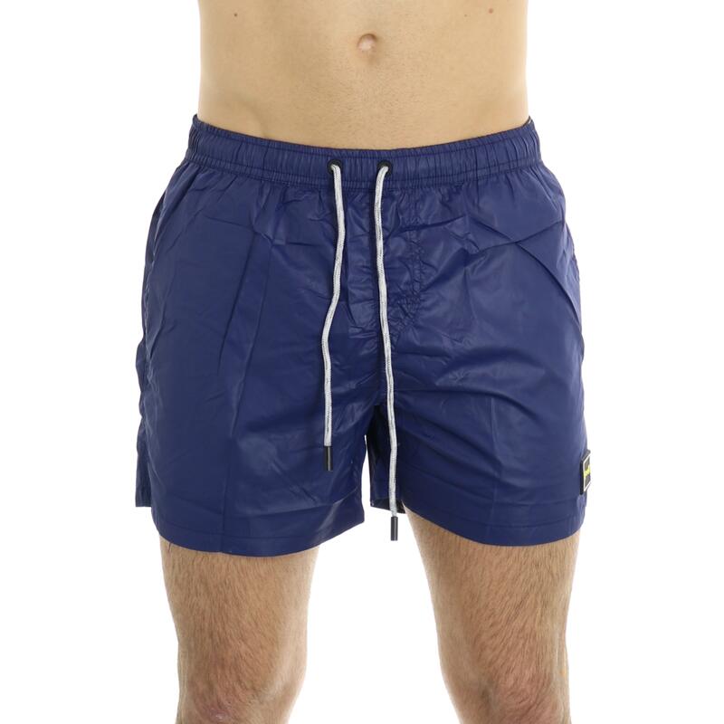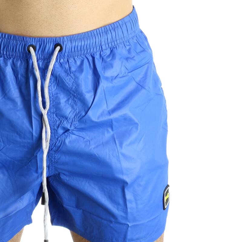 Costume modello boxer, retina interna, elastico e coulisse in vita, logo gommato laterale, tasca dietro. Vestibilità regular.