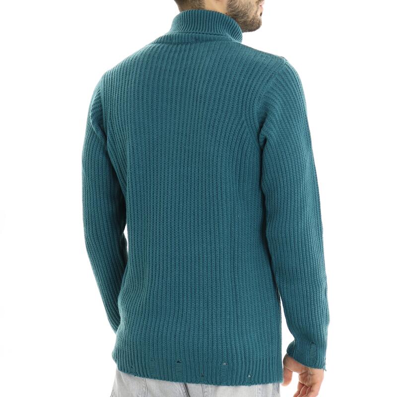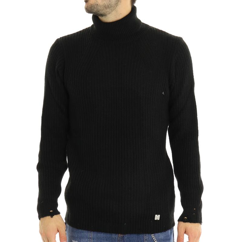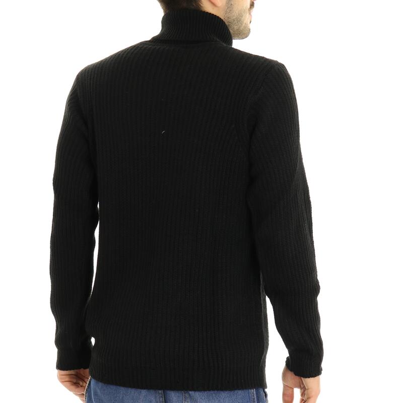 Maglia a collo alto, in costa inglese, tinta unita, rotture sui polsini e sul fondo. Vestibilità regular.