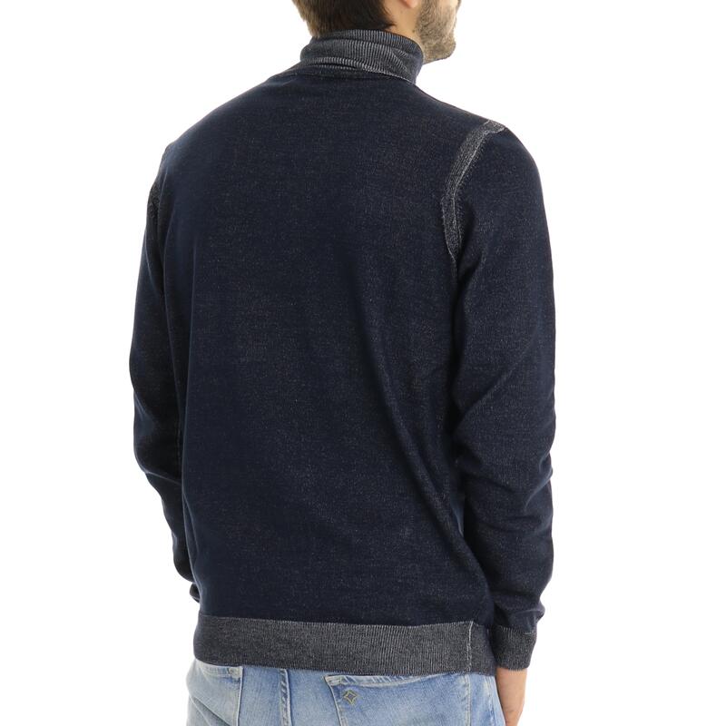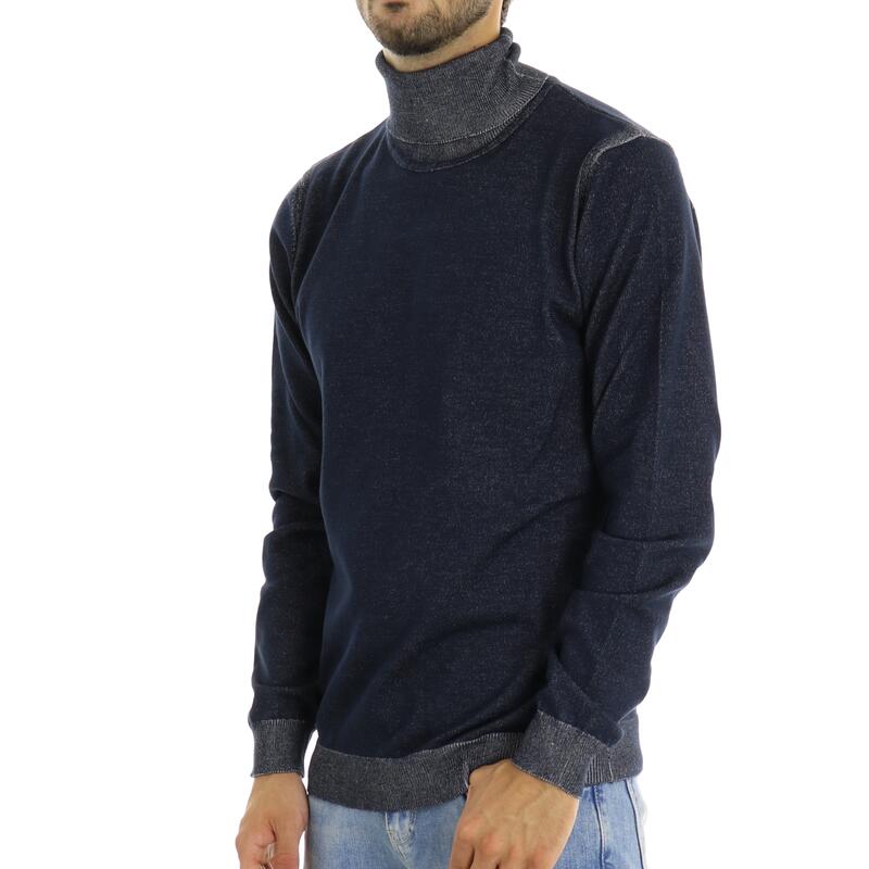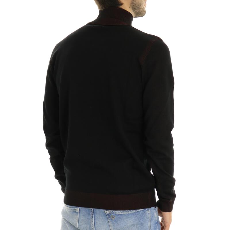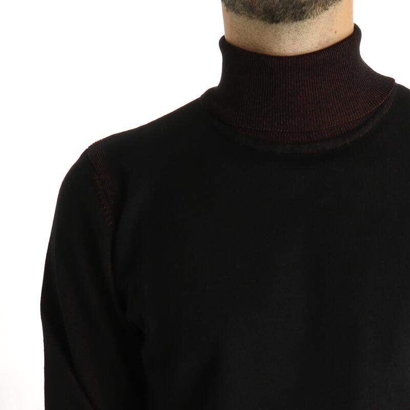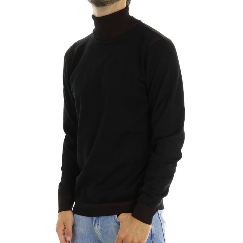 Maglia a collo alto, contrasti sul collo, sui polsini e in fondo. Vestibilità slim.