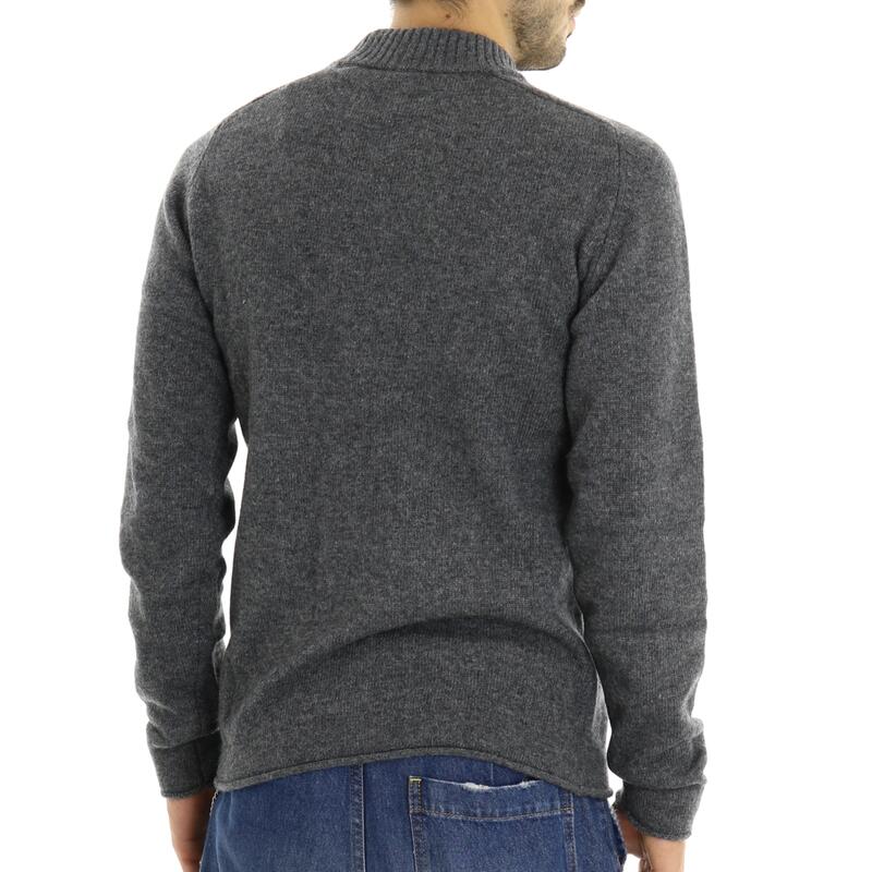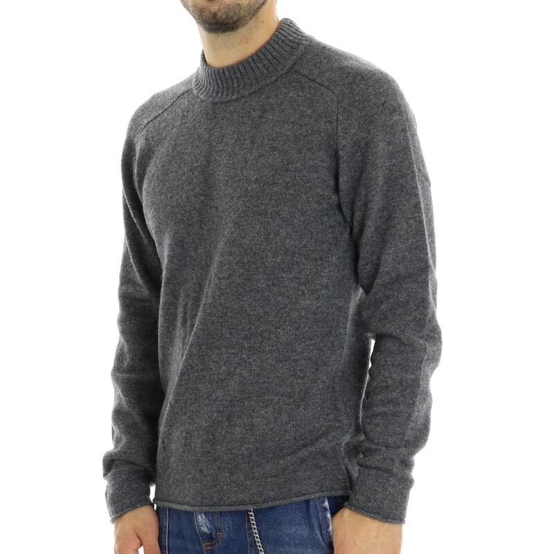 Maglia collo alto in tinta unita, finiture a tagli ovivo senza balza in fondo. Vestibilità regular.