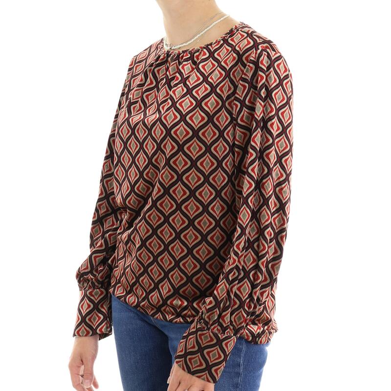 Camicia velvet a maniche lunghe con polsino, girocollo, in fantasia damascata. Vestibilità regular.