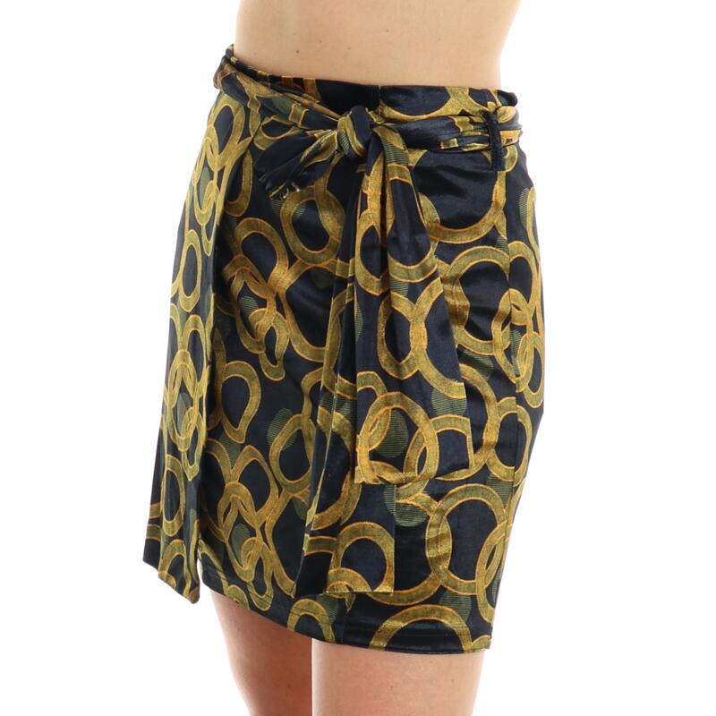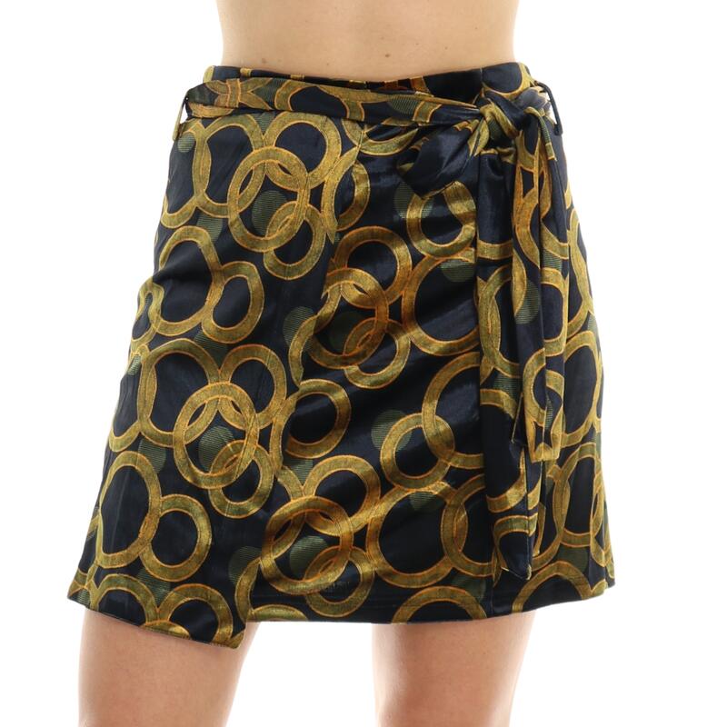 Gonna corta a portafoglio con fiocco in vita, fantasia geometrica. Vestibilità regular.
