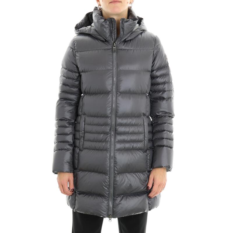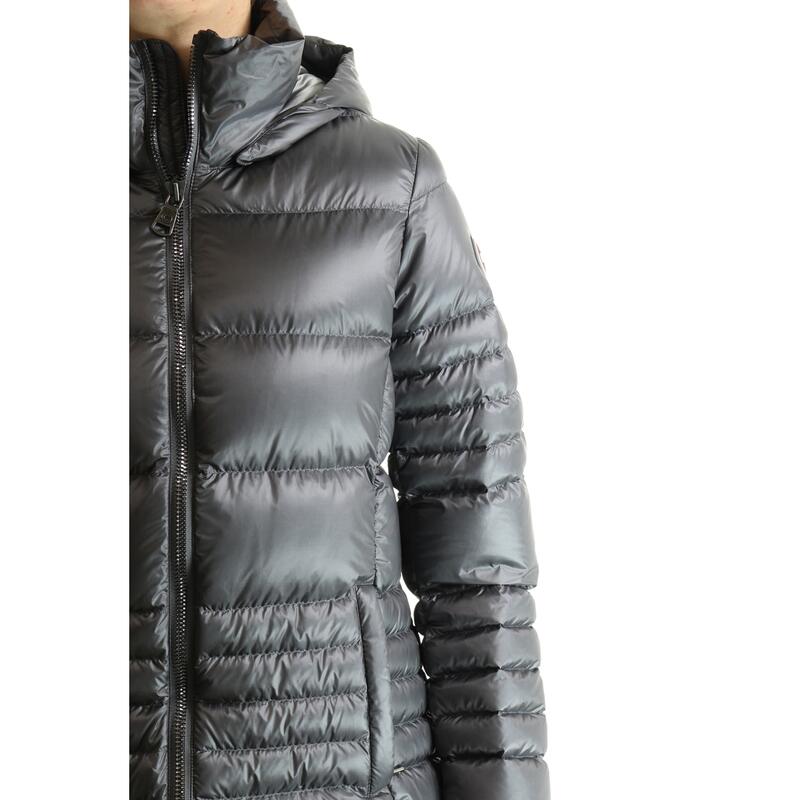 Giubbotto imbottito con piuma d'oca, cappuccio staccabile, chiusura con zip a doppio cursore, logo cucito sulla manica. Vestibilità regular.