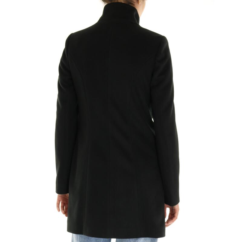 Cappotto avvitato in panno con bottoni frontali, lunghezza 3/4, collo in piedi, vestibilità regular.