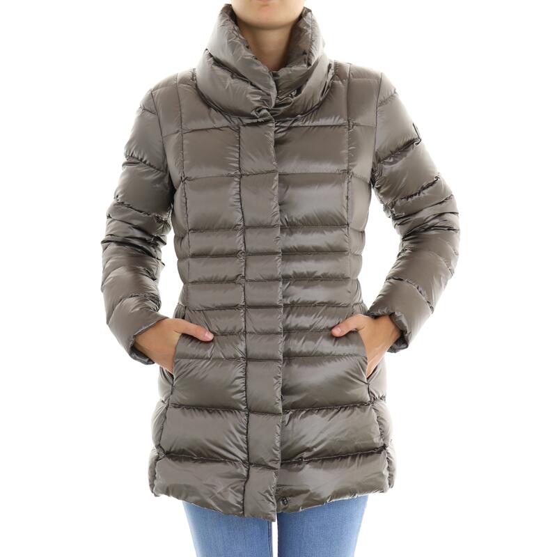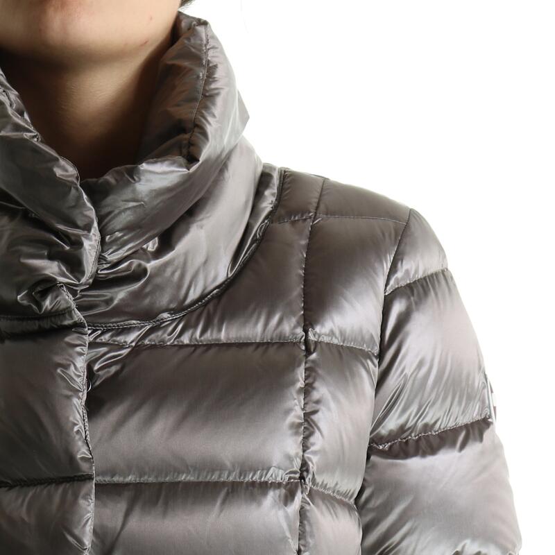Giubbotto imbottito con piuma d'oca, collo in piedi, chiusura con zip coperta, tasche davanti con zip a scomparsa, logo cucito sulla manica. Vestibilità slim.
