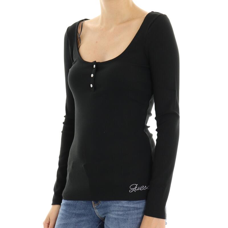 T-shirt a maniche lunghe, a costine, girocollo con bottoni gioiello. Vestibilità slim.
