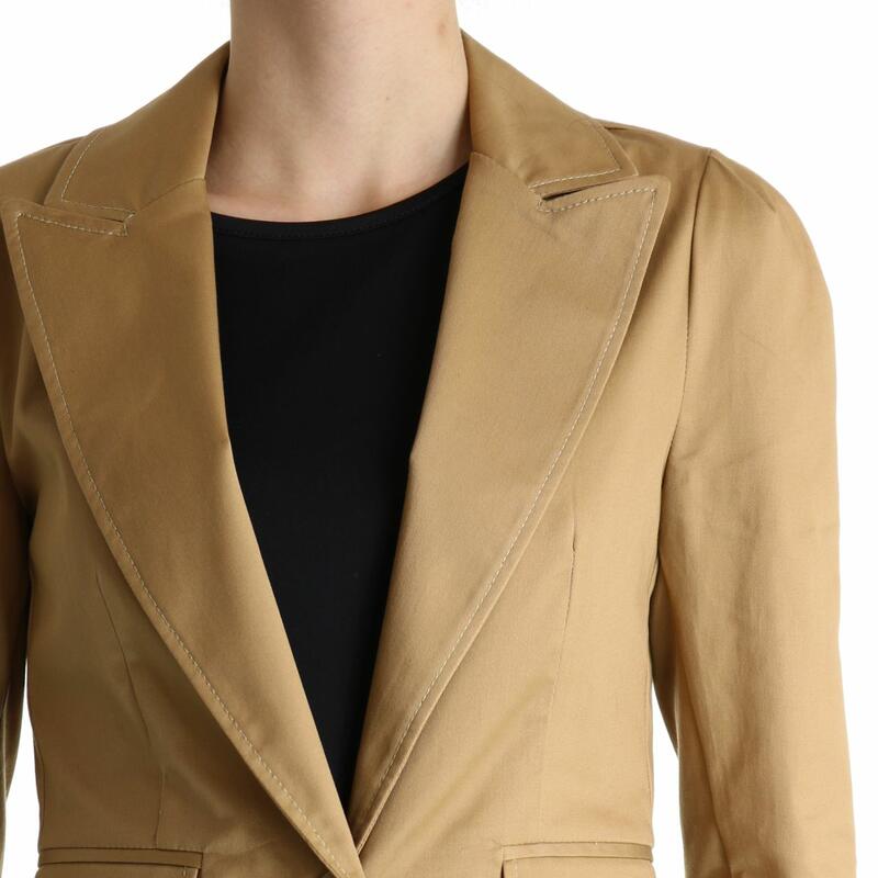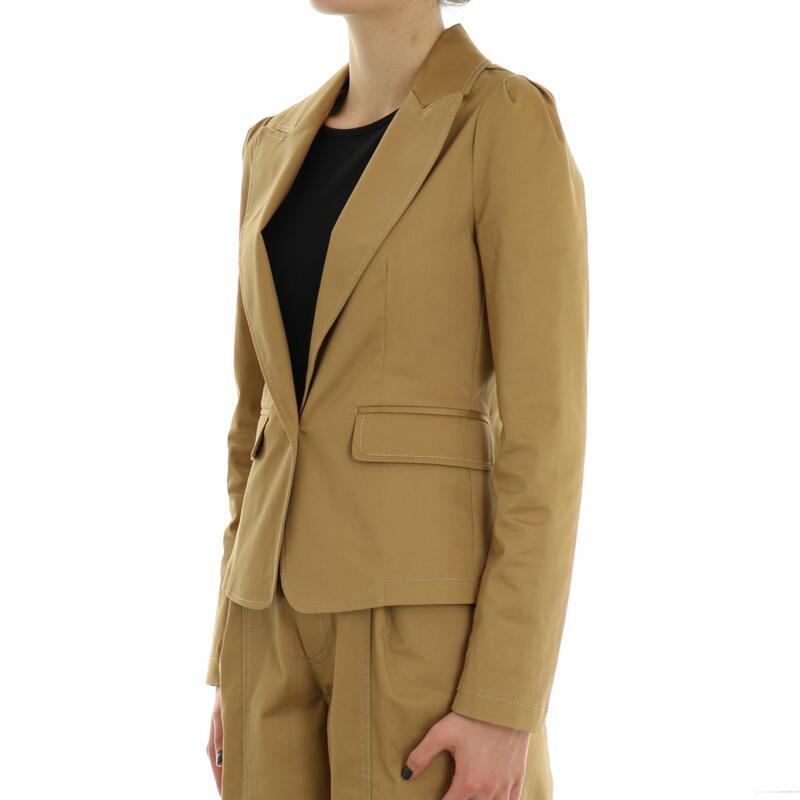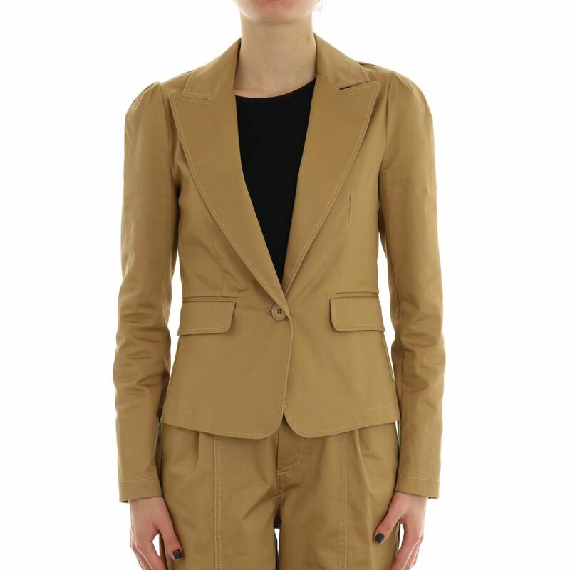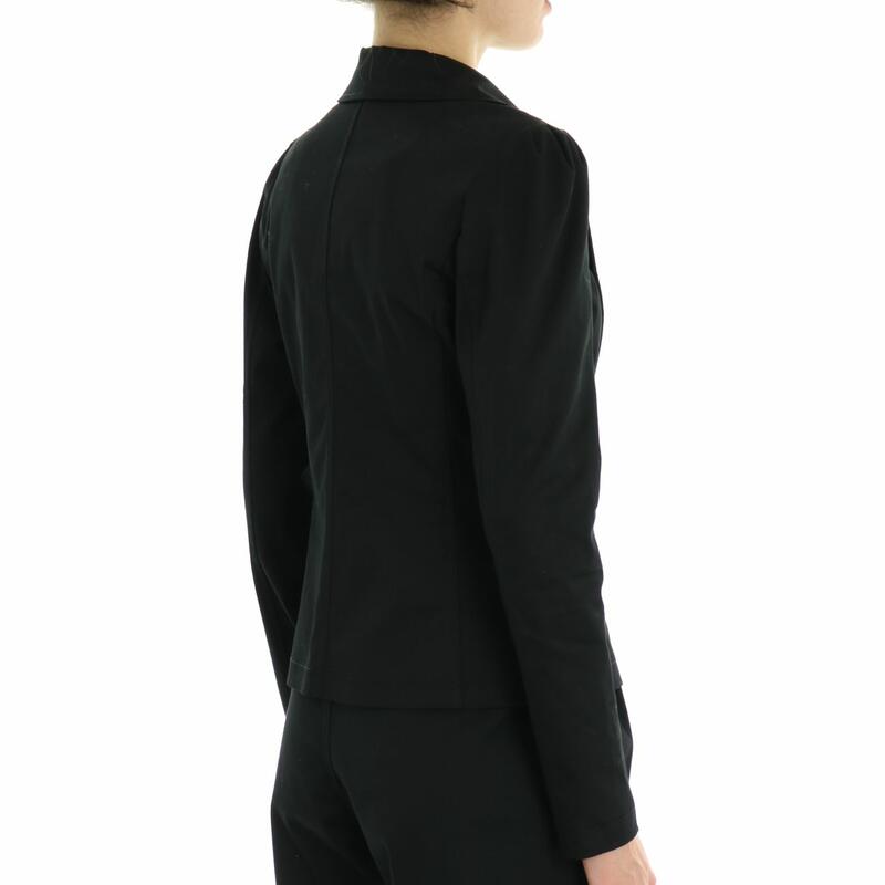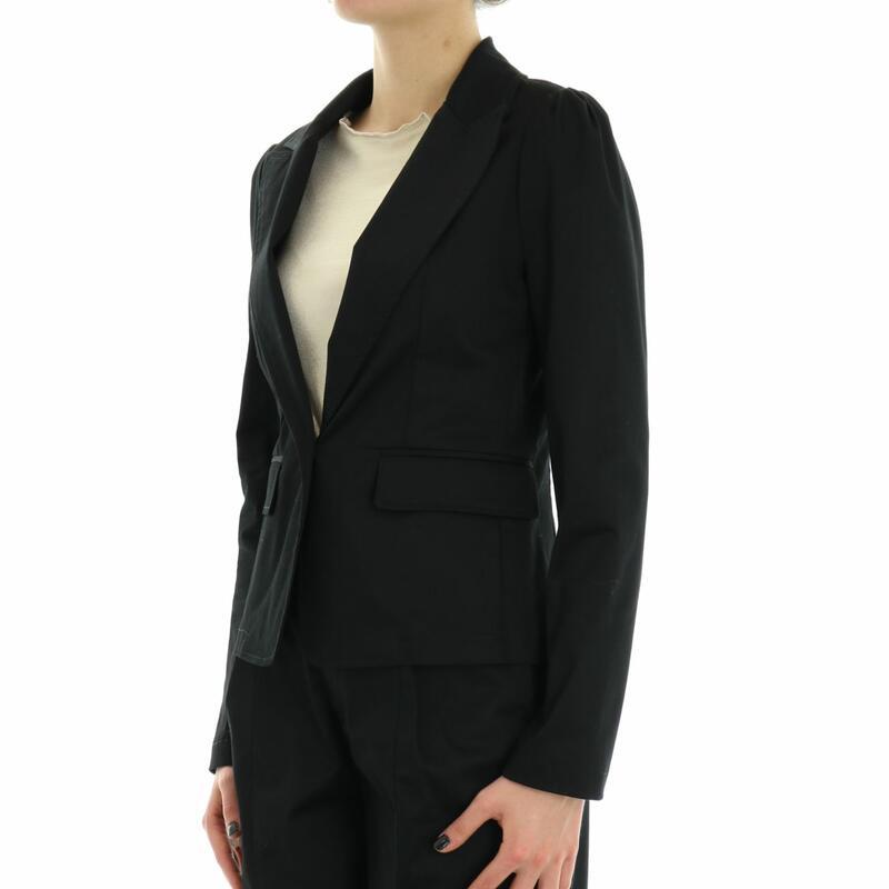 Giacca monopetto, rever classico, tasche frontali, maniche a sbuffo. Vestibilità slim.