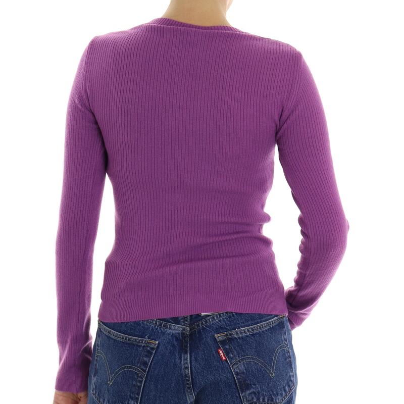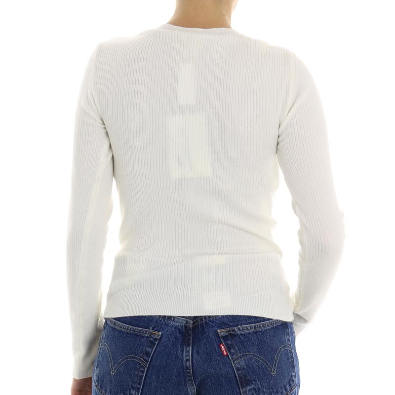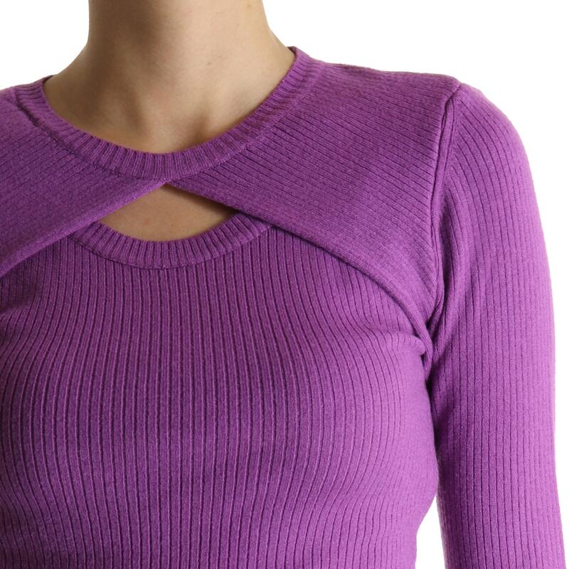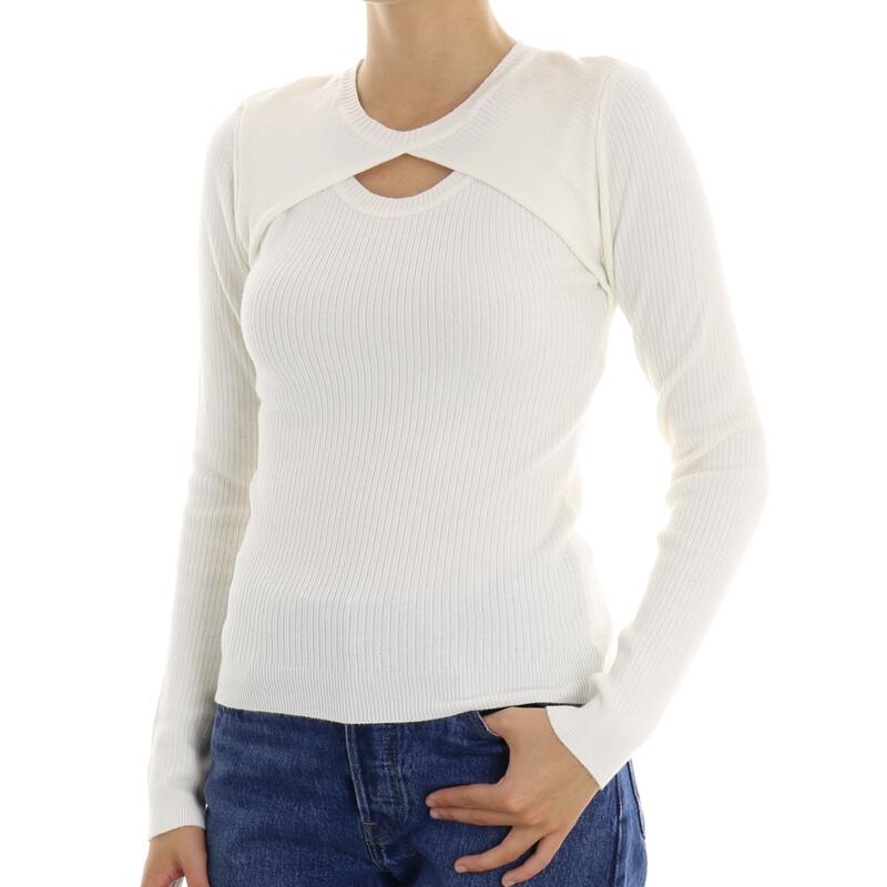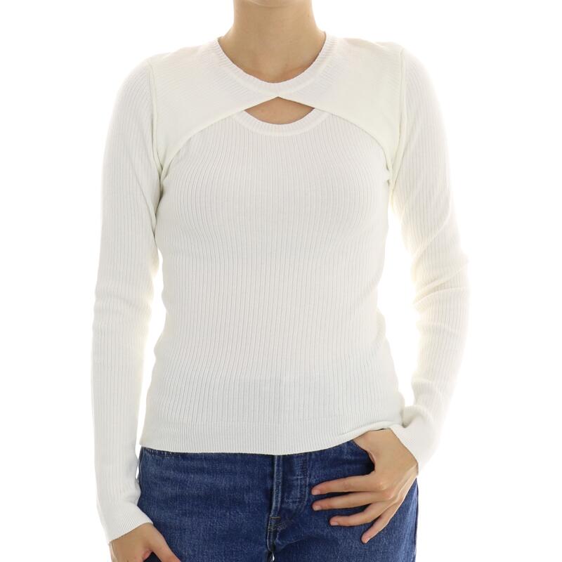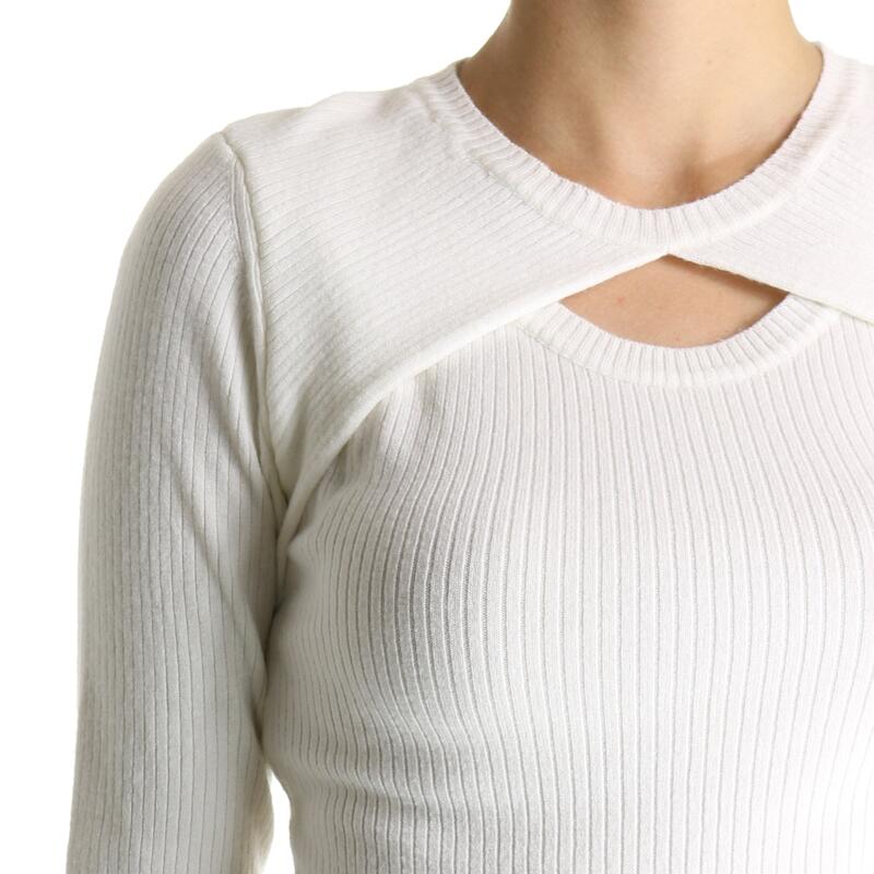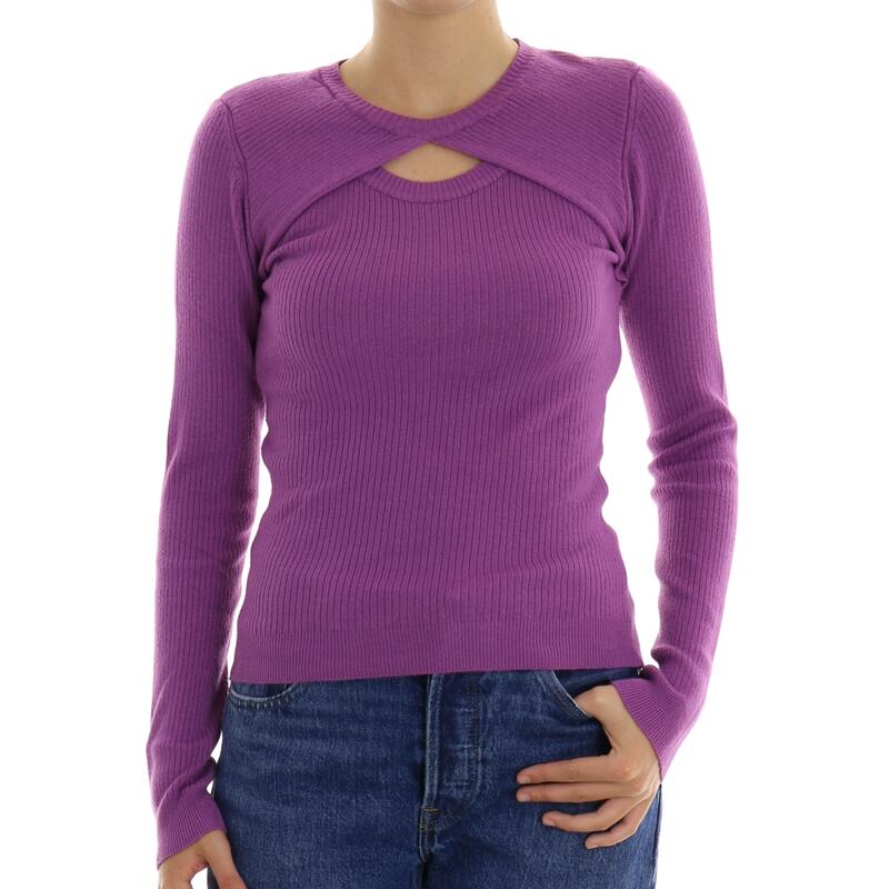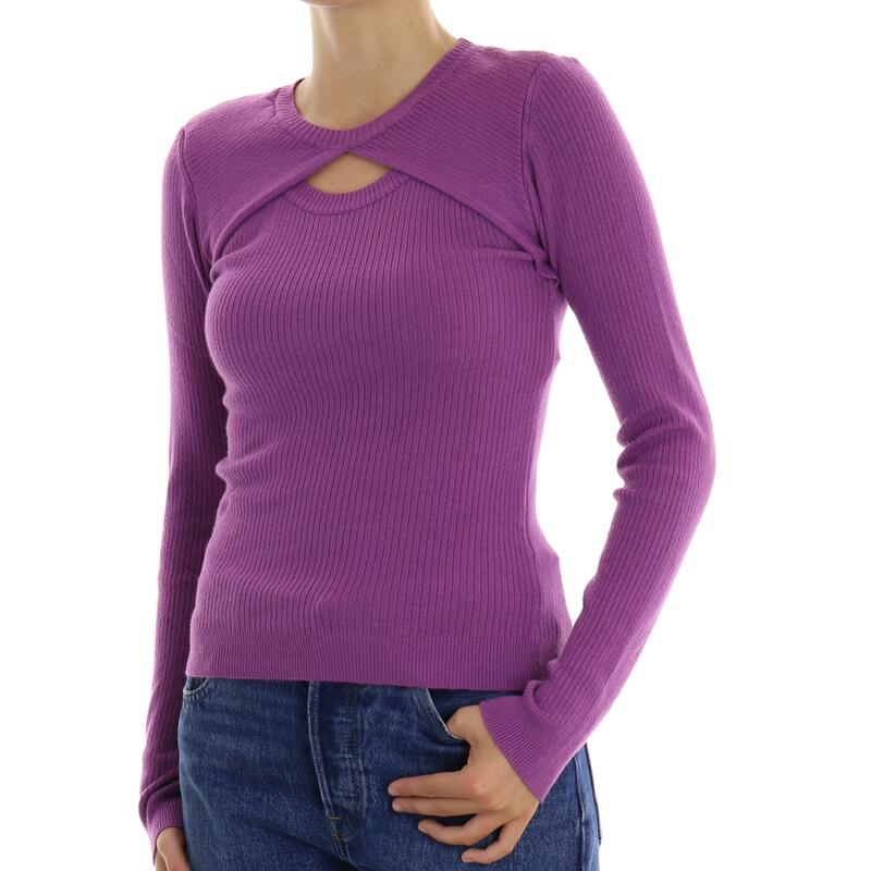 Maglia girocollo, tinta unita a coste, cut-out frontale. Vestibilità slim.