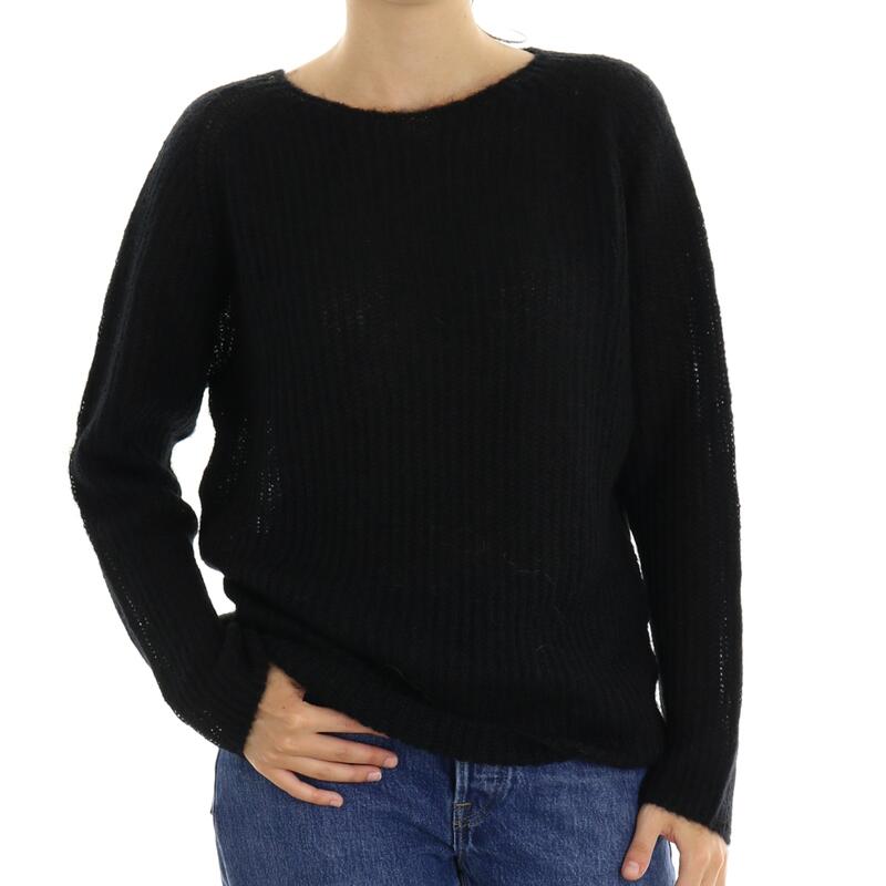 Maglia scollo a barca, in mohair a coste, tinta unita. Vestibilità regular.
