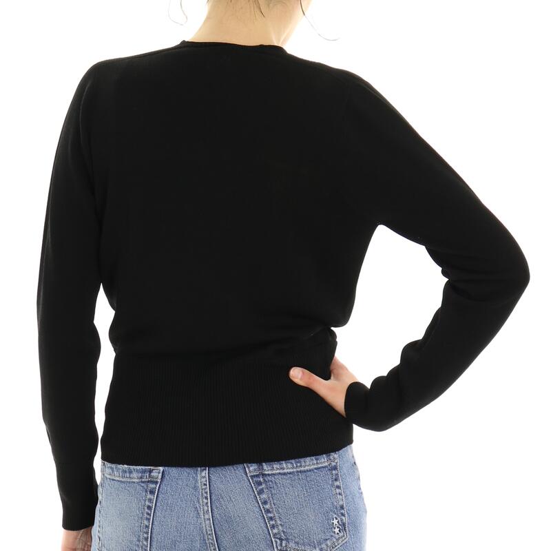 Maglia tinta unita con scollo a V incrociato e balza in fondo. Vestibilità slim.