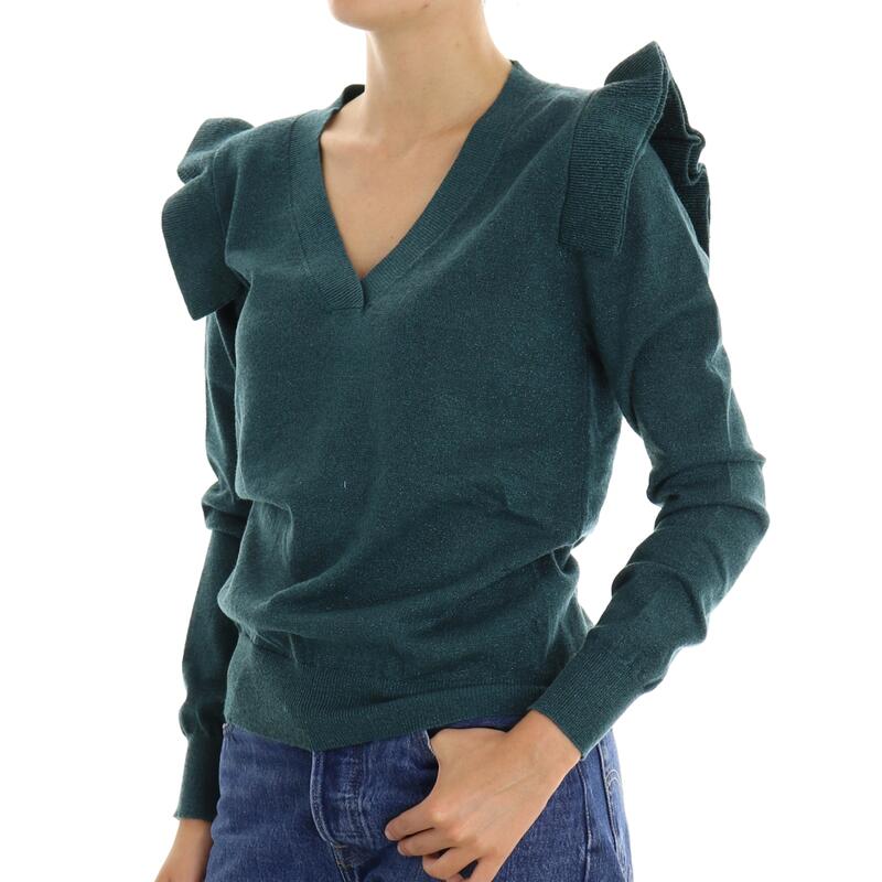 Maglia scollo a V, in lurex, rouches sulle spalle. Vestibilità slim.