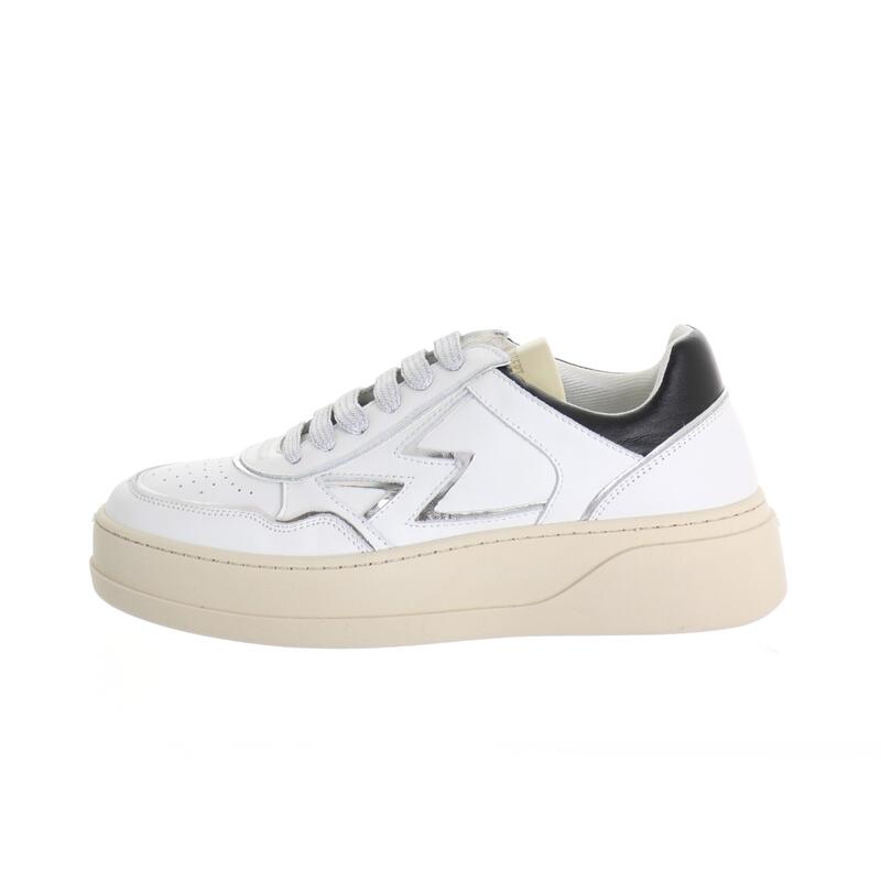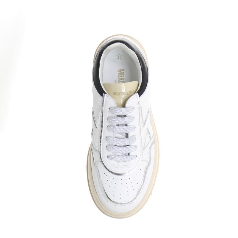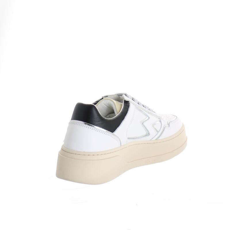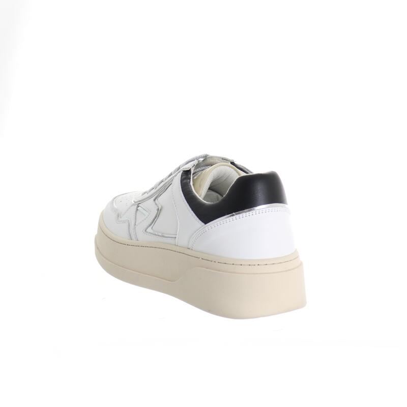 Sneakers in pelle bianca con dettagli in pelle argento, backtab in pelle nera, suola altezza 4,8 mm, soletto in pelle. Calzata regolare.