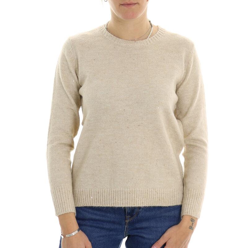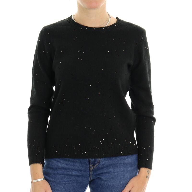 Maglia girocollo con mini paillettes, polsini e balza in fondo. Vestibilità slim.