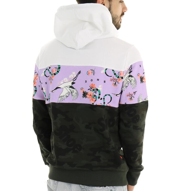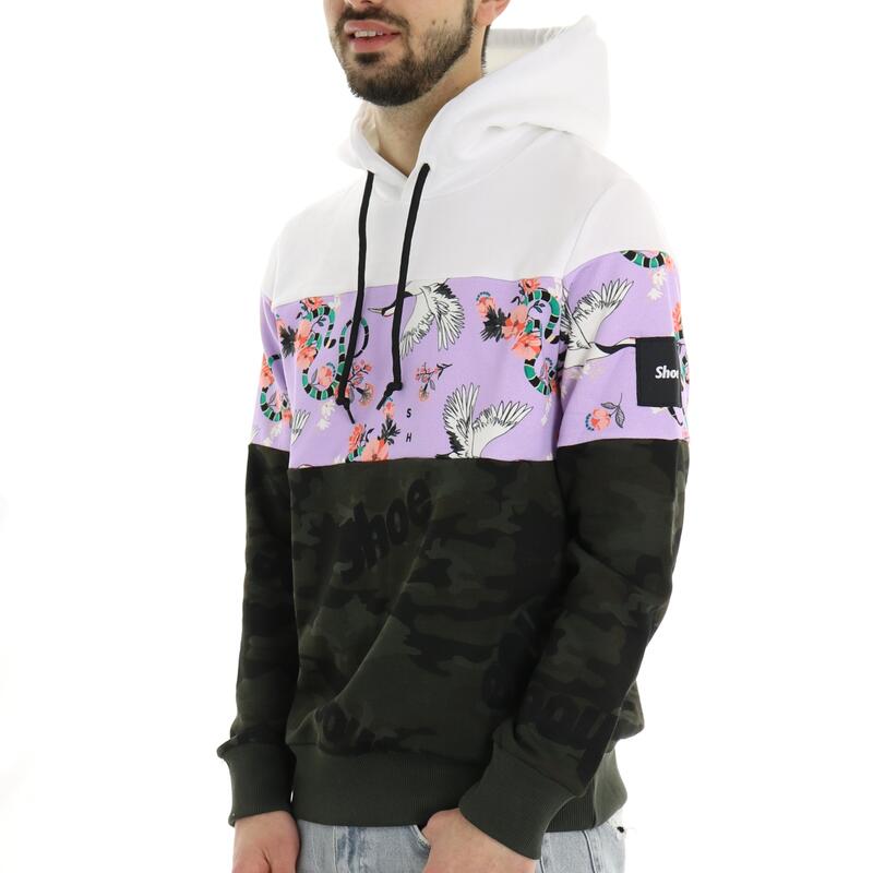 Felpèa garzata con cappuccio, in fantasia, logo patch su braccio. Vestibilità regular.