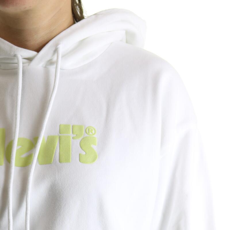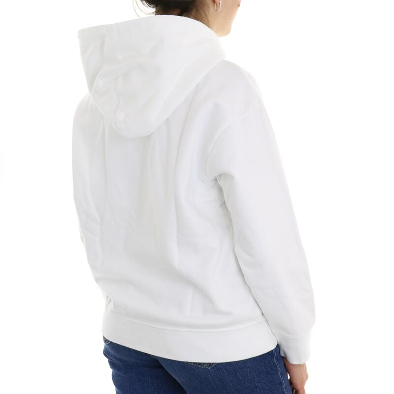 Felpa chiusa con cappuccio, tasca marsupio, logo frontale a contrasto. Vestibilità regular.