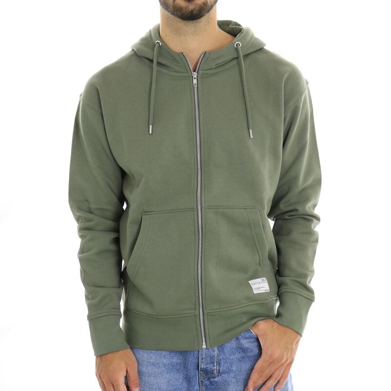 Felpa aperta con zip e tasche, cappuccio, logo ricamato. Vestibilità regular.