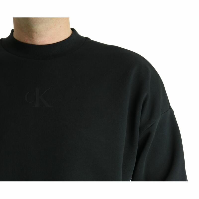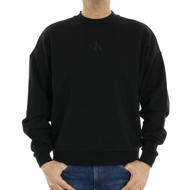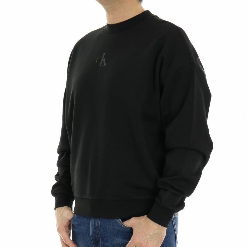 Felpa girocollo confort, spalla scesa, stampa tono su tono nella schiena, vestibilità over.