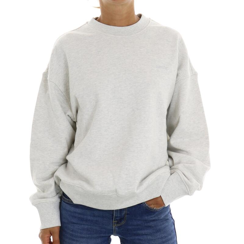 Felpa girocollo, spalla calata, manica ampia con polsini, balza in fondo, logo ricamato. Vestibilità relaxed.