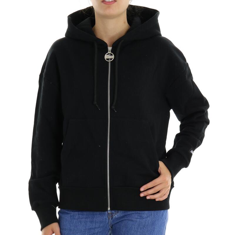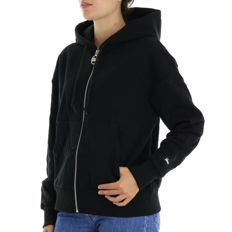 Felpa basic con zip e cappuccio, tinta unita. Vestibilità regular.