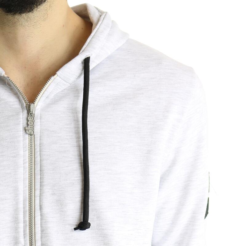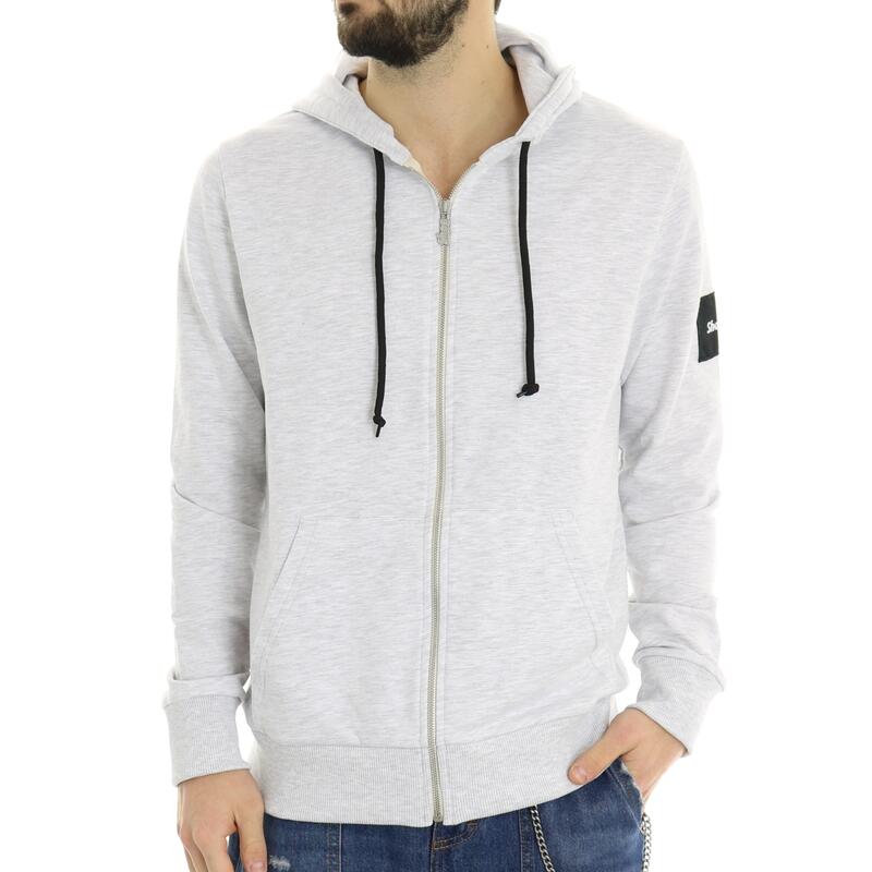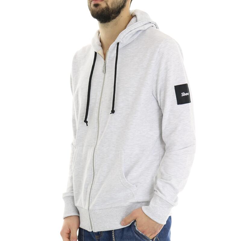 Felpa full zip in tinta unita, con cappuccio, logo patch e tasche frontali. Vestibilità regular.
