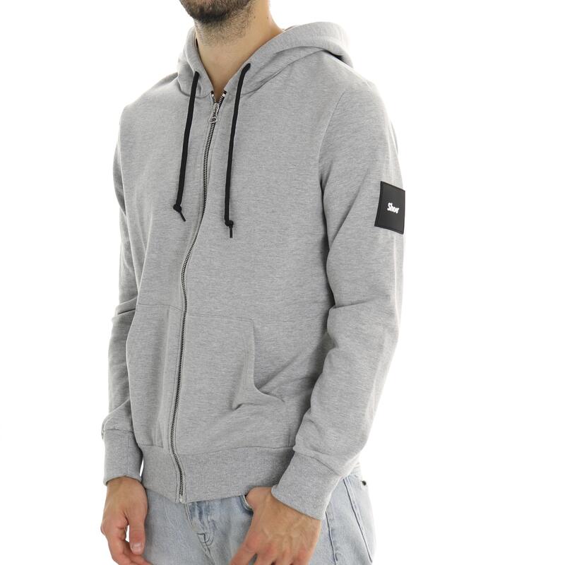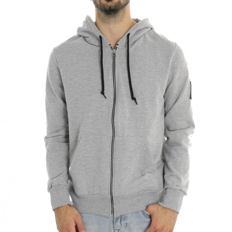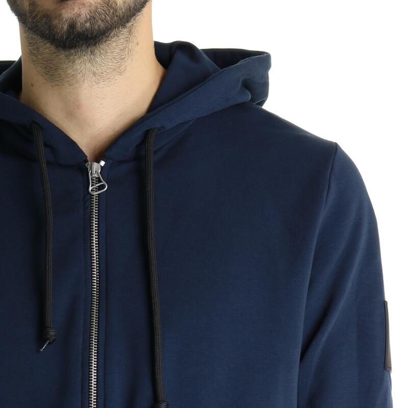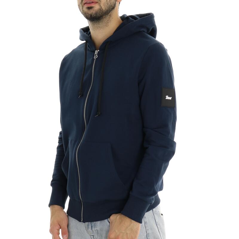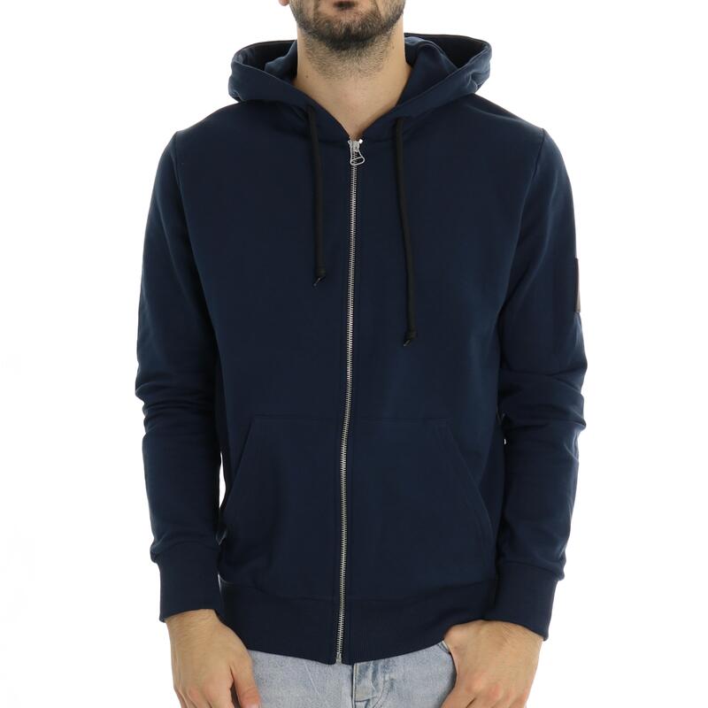 Felpa full zip in tinta unita, con cappuccio, logo patch e tasche frontali, felpata. Vestibilità regular.