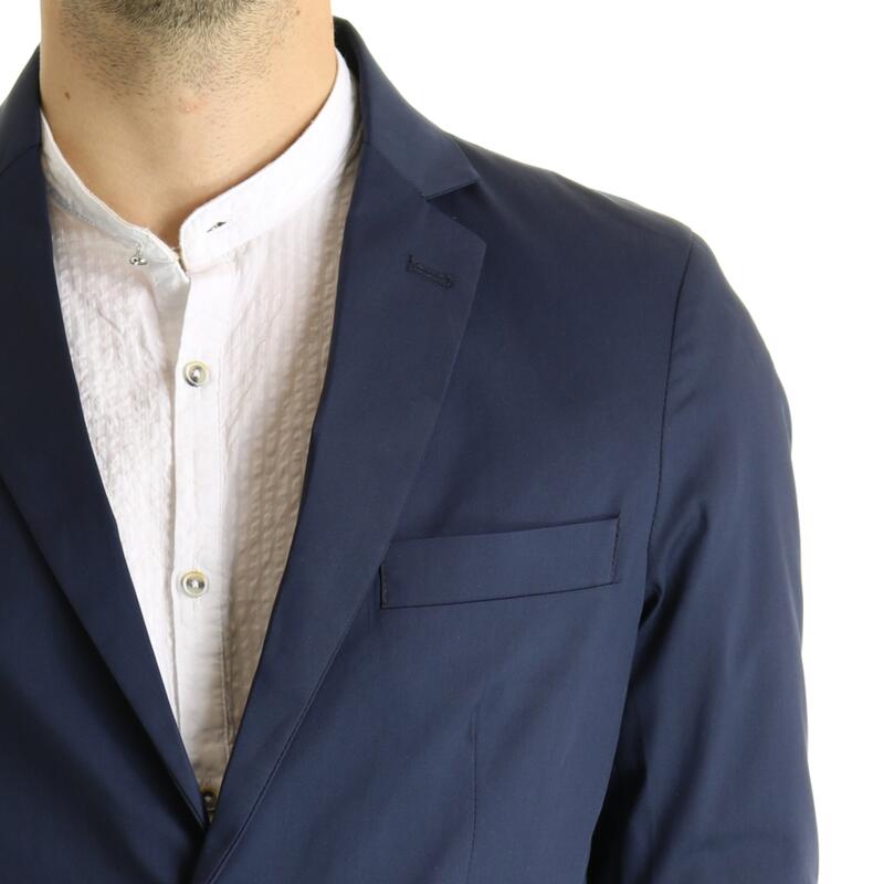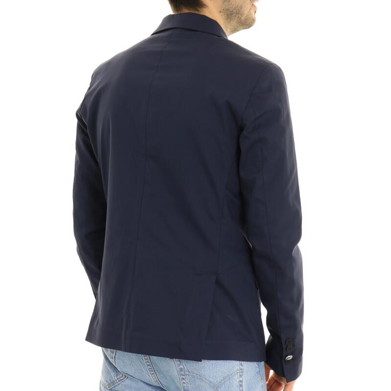 Giacca a due bottoni con rever, tasche con pattina e venatura, doppio spacco dietro. Vestibilità slim.