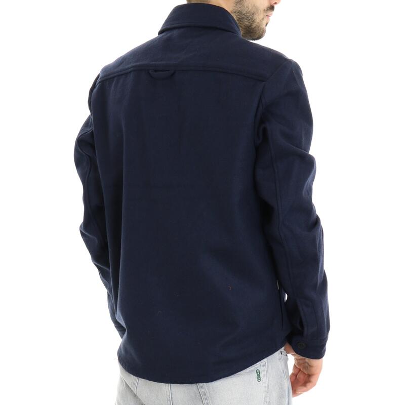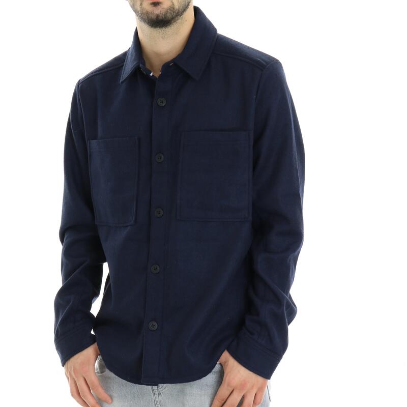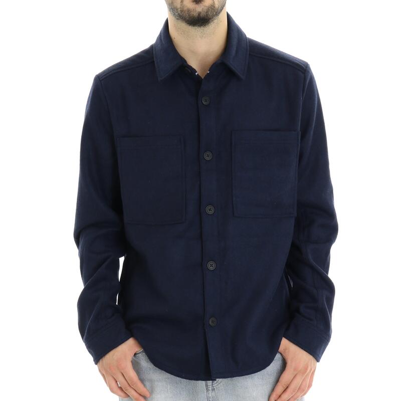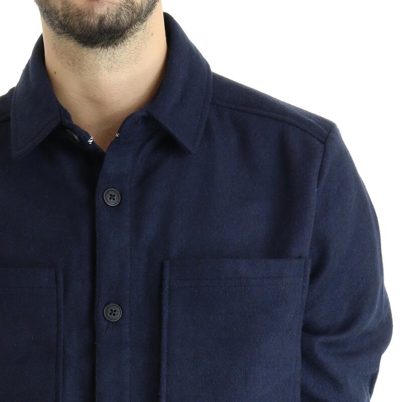 Giacca in panno con collo camicia, tasche toppa sul petto, tasca filo sul fianco, vestibilità regular.