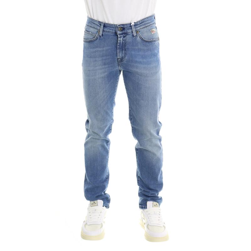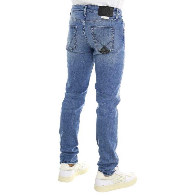 Jeans stretch, lavaggio medio, vita regular, salpa a contrasto, logo sulla tasca. Vestibilità slim.