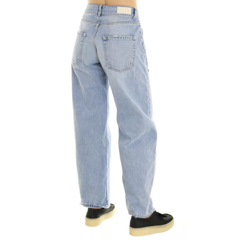 Jeans morbido a gamba larga e vita normale, rotture frontali, lavaggio chiaro. Chiusura con bottone e zip. Vestibilità over, si consiglia almeno mezza taglia sotto rispetto alla solita.