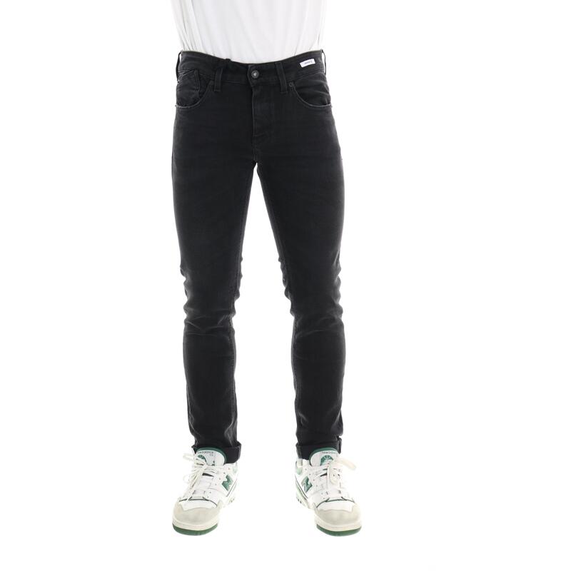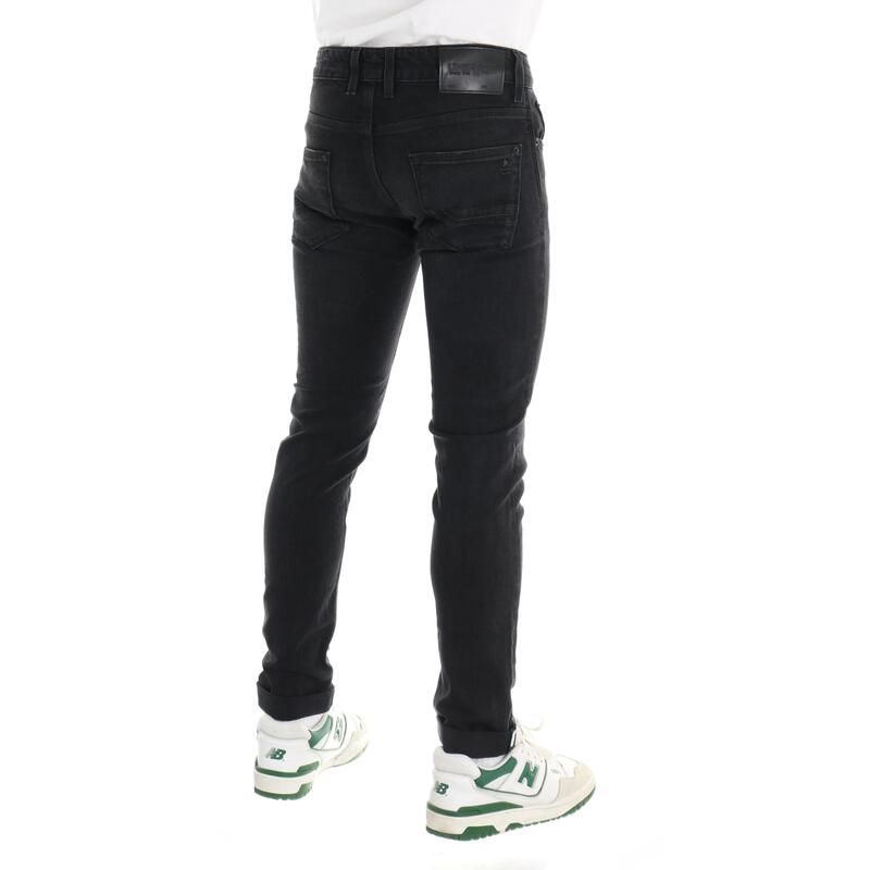 Jeans stretch, vita media, lavaggio black, cuciture in tono, chiusura con bottone e zip. Vestibilità skinny.